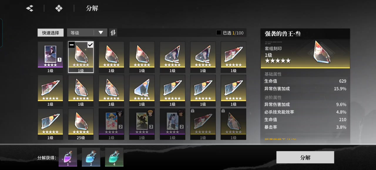 循环要留一层战场技蓄buff,卍户210(带的五星分支2),店长111,白哉215,打桩只是理论不代表实战。