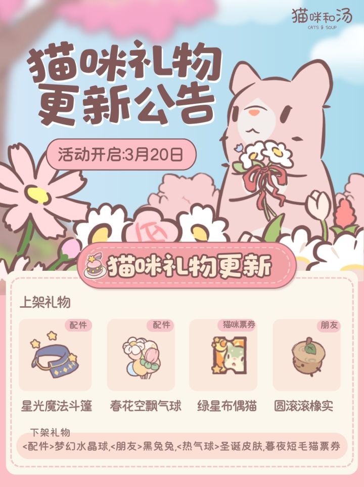 欢迎入职猫咪森林~ 我们有:毛茸茸的猫咪同事、轻松的熬汤工作、完善的休憩设施 除此之外,每周还会提供精致下午茶喵! 在巨大的落地窗前,一边欣赏森林美景,一边享受甜蜜的下午茶 悄悄说,每只猫都可以邀请一位人类朋友,一起来品尝喵~ 🍰 猫小屋「花园下午茶」系列家具,4月起可通过通行证获得喵~#猫咪和汤 #游戏日常 #发现好游戏