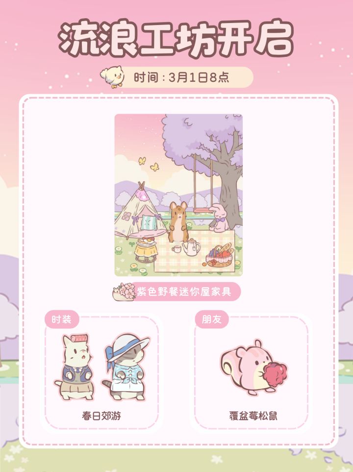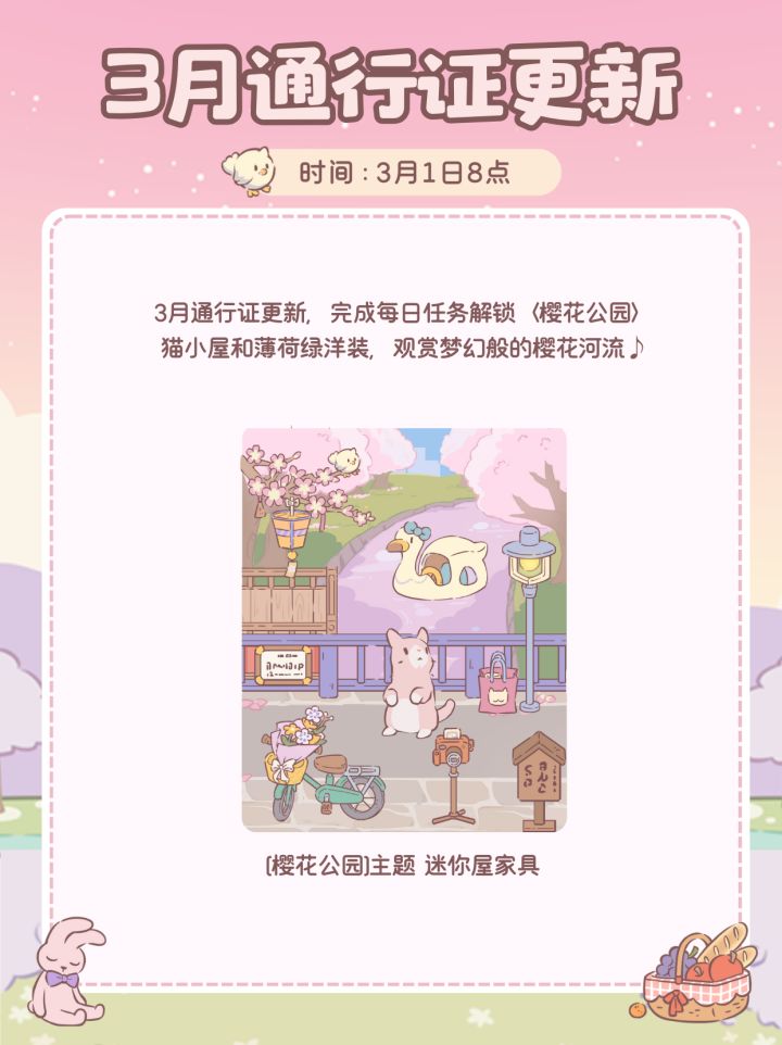 要怎么把猫咪森林变成粉色呢? 「用刷子把所有的树漆成粉色!」艺术家teety拿起画笔; 「用粉色的棉花糖堆满整个森林!」pawpaw边说边流下口水; kiki则是找来了樱花猫,用魔法,将森林里的树木全部变成了樱花树 一夜之间,盛开的樱花把猫咪森林染成了粉色~ 🌸 新场景樱花森林3月起上线,人类朋友们可以通过流浪工坊获得喵~#猫咪和汤 #游戏日常 #发现好游戏