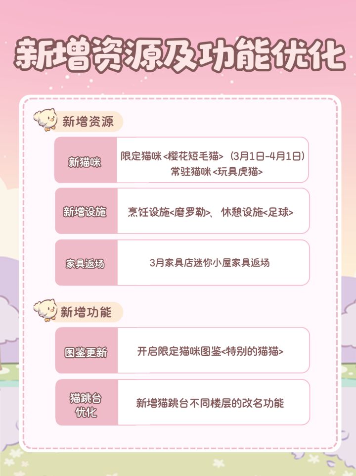 春天到啦,森林里悄悄地长出了好多神奇动物…… 幼儿园的学生鸭鸭,背起小书包; 马卡龙乌龟,龟壳是甜蜜的奶油制成 神奇动物在哪里?神奇动物就在猫咪森林里~♪ 🍓 猫猫的新朋友们将于3月版本陆续登场,具体获取方式详见视频喵~#猫咪和汤 #游戏日常 #发现好游戏