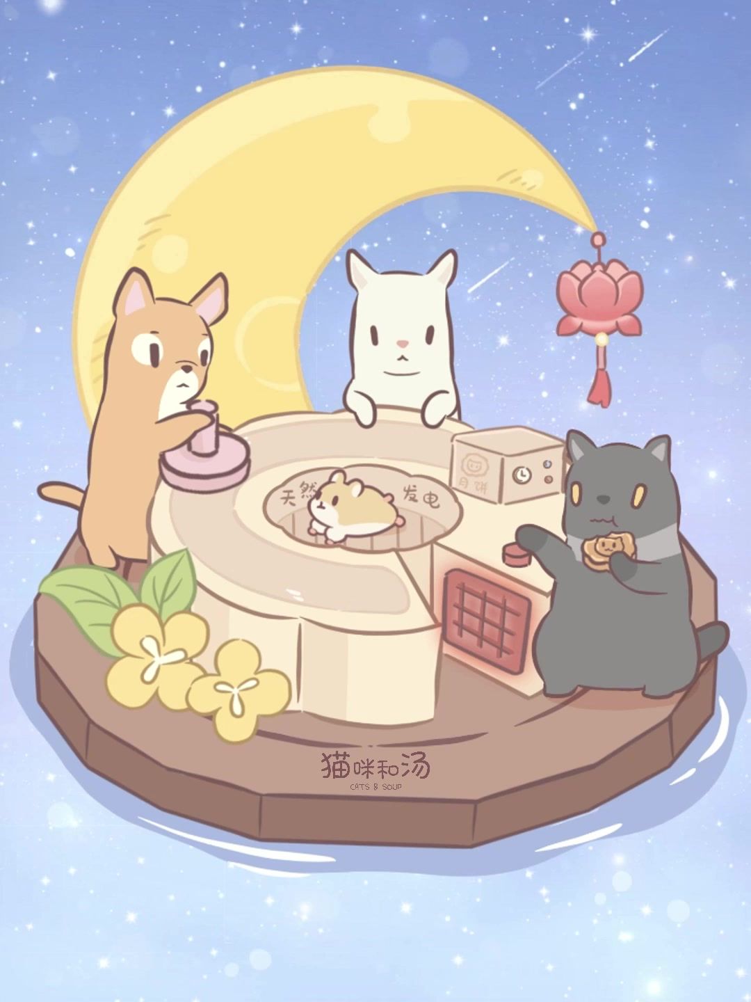 中秋将至,猫猫们开始着爪制作今年的月饼了~ 至于月饼的配方,据说是很久很久以前,路过猫咪森林的两只小兔带来的 为了纪念这两只兔子,猫村每逢中秋,就会在空地建造特别的节日建筑 皎洁的月亮,金黄的桂花,还有在月饼上玩跷跷板的两只兔兔 🥮上新预告:活动设施「月兔的中秋月饼」9月10日登场,各位人类朋友可以通过商店获取~#游戏日常 #猫咪和汤 #发现好游戏