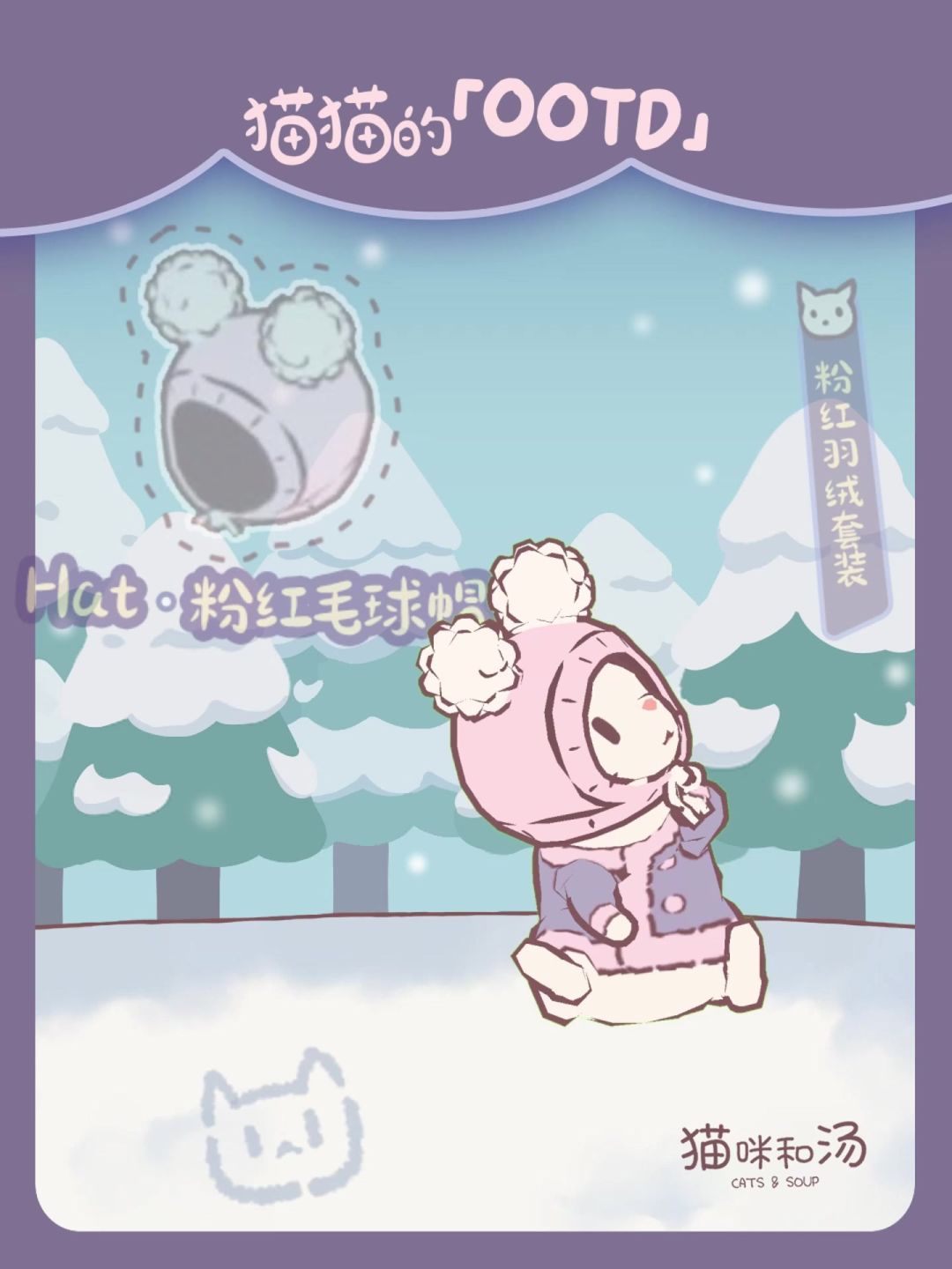 和人类朋友们一起度过的第一个冬天, 猫猫准备了一些超级多巴胺的可爱穿搭喵! 可爱毛球装饰的粉色羽绒服,美拉德色系的兔耳套装,还有帅气的红黑猫耳羽绒~ 谁说过冬就要穿得臃肿无聊?猫村有自己的时尚法则 ☃️以上三套冬季装扮将于12月登场,人类朋友可以从通行证获取喵#猫咪和汤 #发现好游戏 #游戏日常