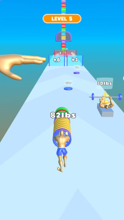 Collect as many weight plates as you can! Finish the level with as much weight as possible and prove that you are the strongest! Watch out for obstacles on the way!