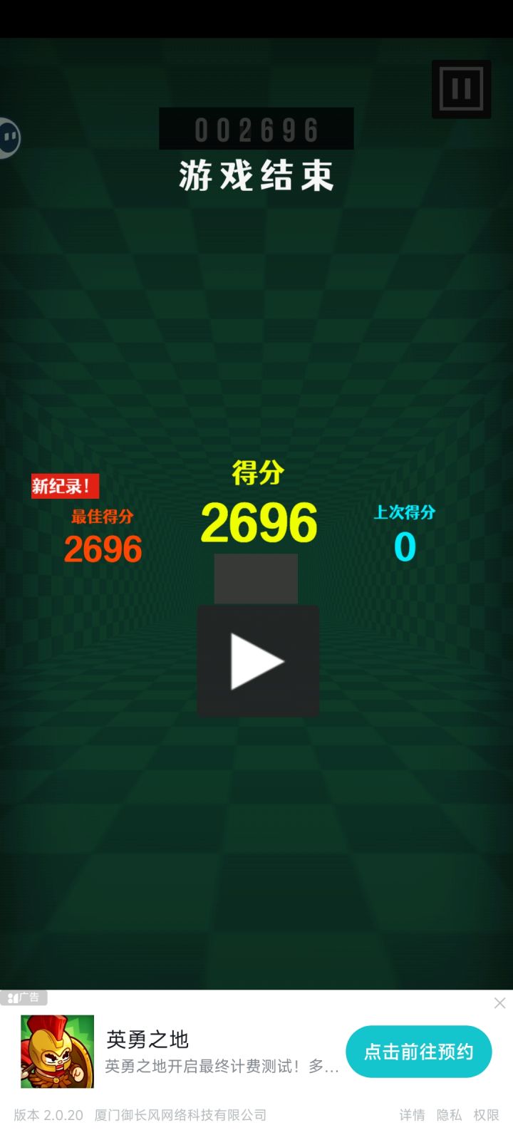 规则很简单的单机休闲游戏,体验很像远方,通过左右屏的方式操控方块沿着四壁移动,躲避前方障碍物。没有终点,但速度等级会逐渐提升,关卡也会切换,障碍物更加丰富,一直到撞死为止。