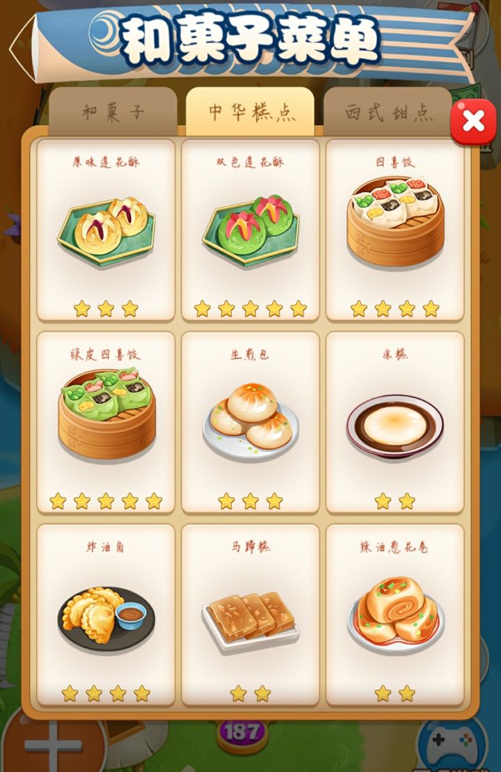 3.食材补充的时间三个游戏都各不相同。拉面最慢,寿司第二,点心最快(个人感觉)虽然这和游戏里的相关升级有关,但确实如此。做菜时间可以考虑加快一点,综合起来才能整体的提高客流量和店铺收入,对获得满星也有实质性的帮助。