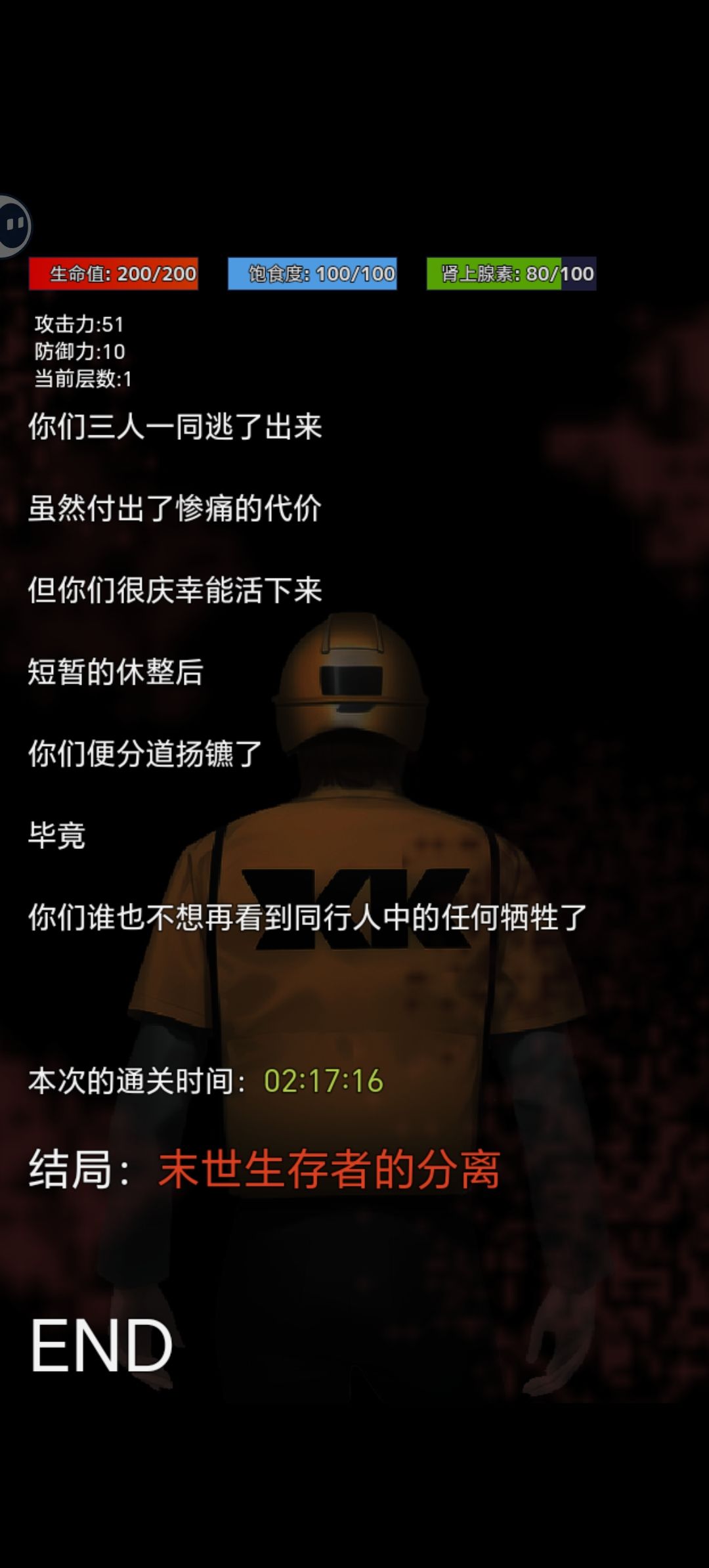 大家都大家都知道这个游戏一共有100层 而伙伴的而伙伴的获取分别是在70层 的查理 50层 的妹子 以及20层 的锤子哥 他们都他们都是不可或缺的 所以在20层之前 请一定认真搜索每个房间 以保证他们的存在 这会让你这会让你的生存变得轻松许多 关于物质的搜索 我个人不建议在获取伙伴之前搜索地上的任何一具尸体 而当而当获得伙伴之后 只要不出miss就能无伤通过每个尸体 而且困扰前期生存