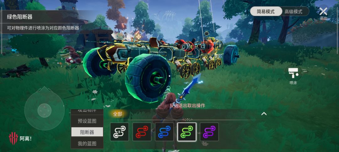 阻断器就是一个开关,自己染色,什么色阻断器开关控制什么色的部位,那个活动扭臂的起始角度就是阻断器不启动时候的角度,目标角度结束角度就是启动阻断器后的角度