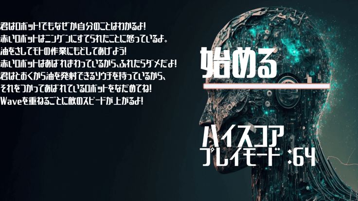 ロボットが油を発射して、追撃してくる廃棄物、赤いロボットを正常化したり避けたりしながらゴールを目指す簡単ゲーム!