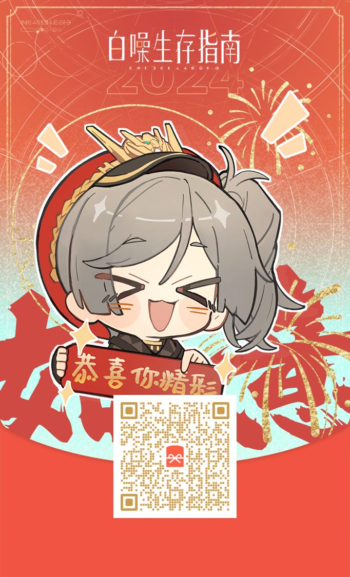 2024春节将至,安全屋管理中心提醒您,新的一年里请遵循以下规则——规则一:身体健康!规则二:万事如意!规则三:财源滚滚!▶▶▶领取方式:2月8日22:00起,使用微信扫描下方二维码即可获得,微信红包封面有效期为3个月*数量有限,送完即止▶▶▶官方Q群:835282016▶▶▶前往预约:https://www.taptap.cn/app/376366#白噪生存指南