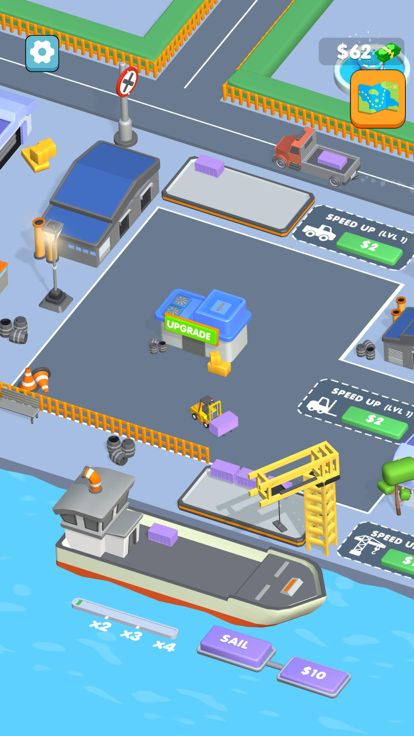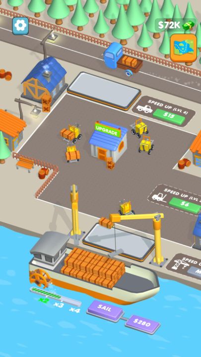 Trucks, forklifts, cranes and sailing ships. Manage your economy and earn more!