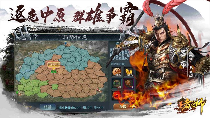 《王者之师》是一款三国国战策略手游,玩家可在游戏中获得自己的领地,并对领地进行建设,同时还可以进行领地结盟、争夺地区霸主以及争夺国王。