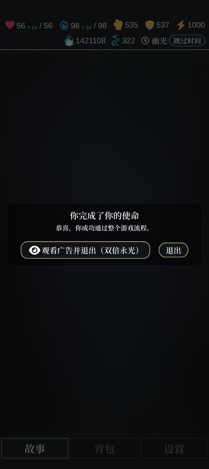 还有个还有个bug,就是不停的刷时间,把时间刷到1000 2000左右,然后你再去搞事件什么的,获得永光有时候就会几千几万的给你加。