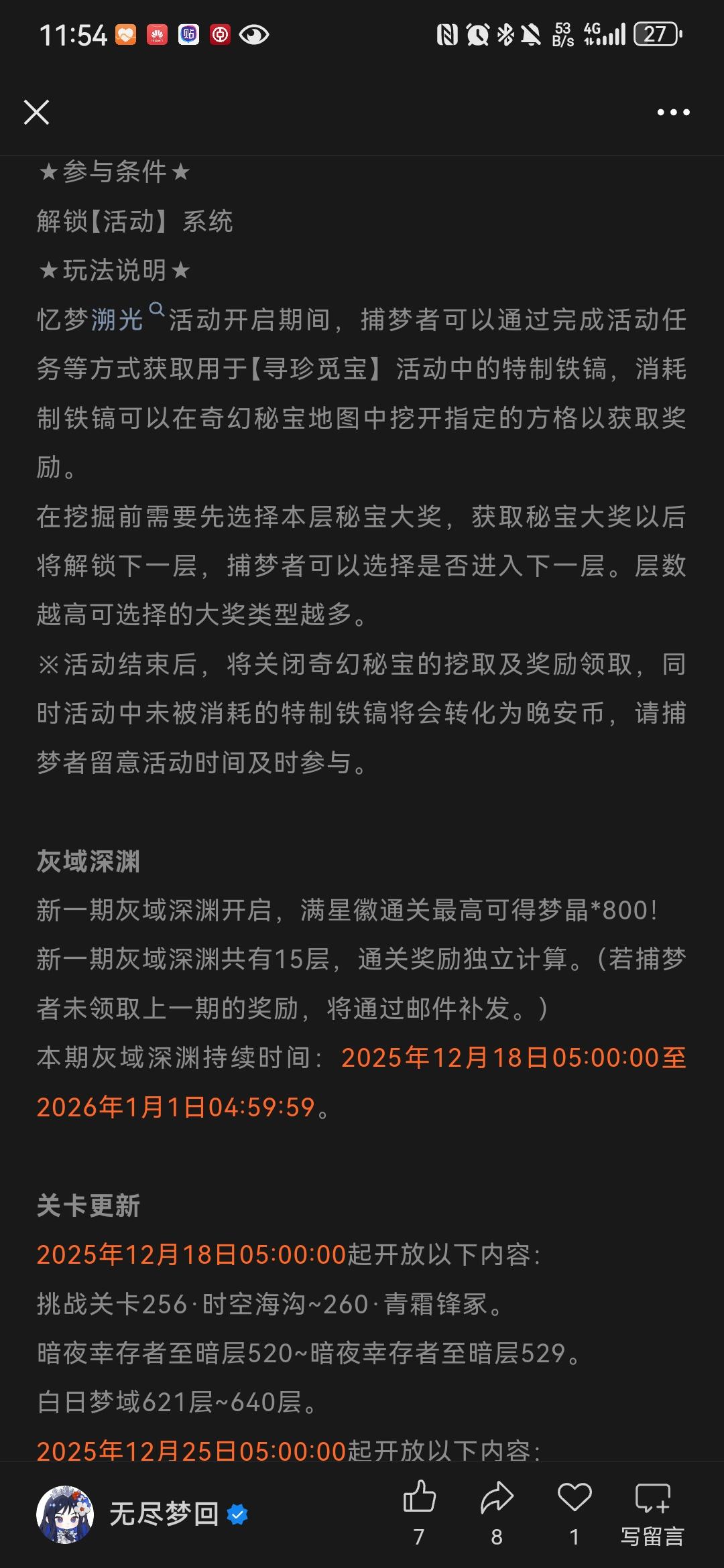 0.官服赶紧出个换绑,求求了1.白日梦。白日梦作为终极玩法,请在击杀BOSS后立即结束计时,而不是要等门刷出来点结束挑战之后再结束,这很蠢,很多时候要点好几次才结束,明明刷的很快了,最后却要被门耽误好几秒,这是人能设计出来的?2.装备合成装备合成解锁高级之后也请让玩家可以继续合成低品质的装备。3.体力值。角色等级卡,装备品质也卡,突破材料还卡,你不觉得你很反人类吗?要么你跟破坏神一样做