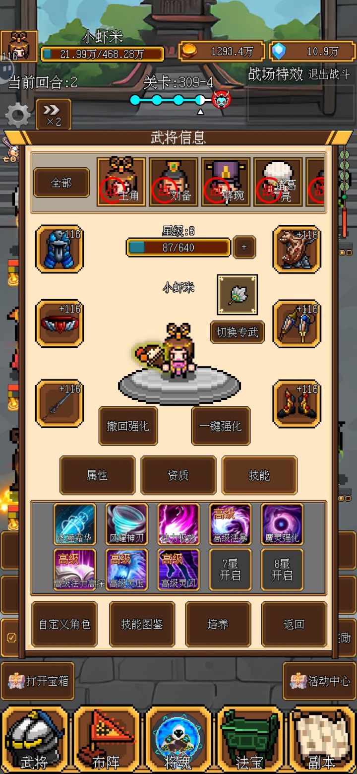 2D像素风有点古典,角色形象可以自定义,有一定趣味性。三国角色特点明确,具有一定角色代表意义。世界观上混入了一定修仙和玄幻元素,缺乏内容补充。界面不多,功能逻辑清晰,易理解上手。