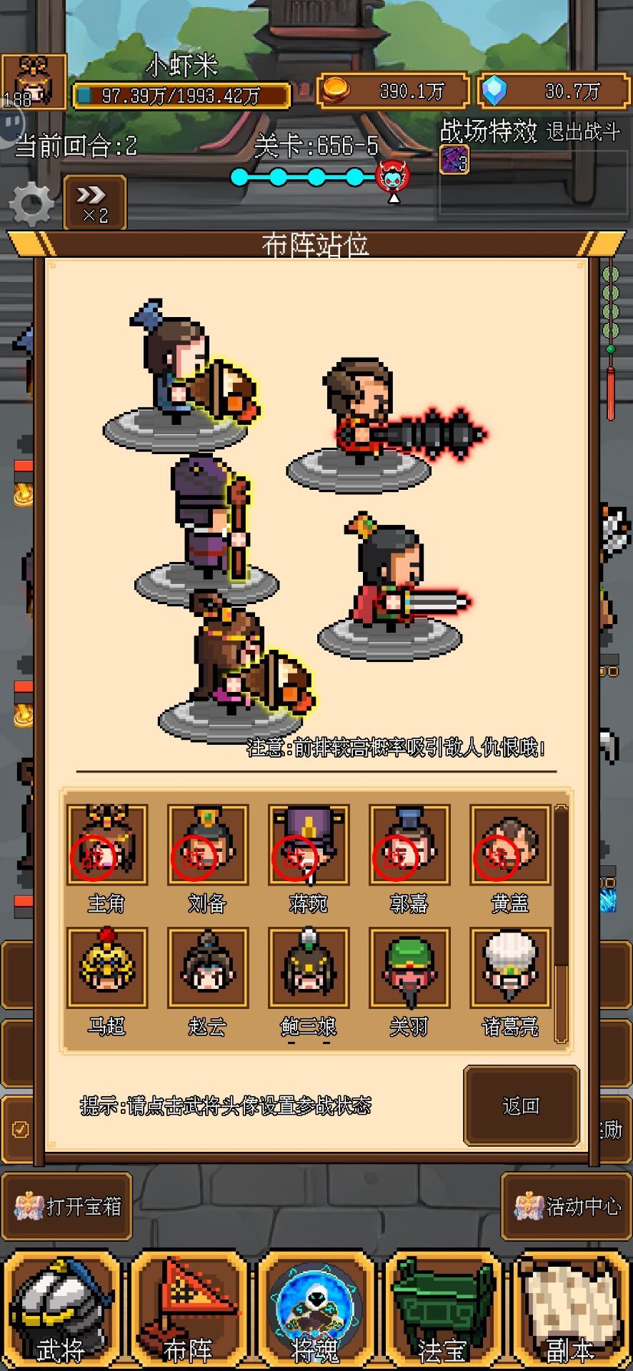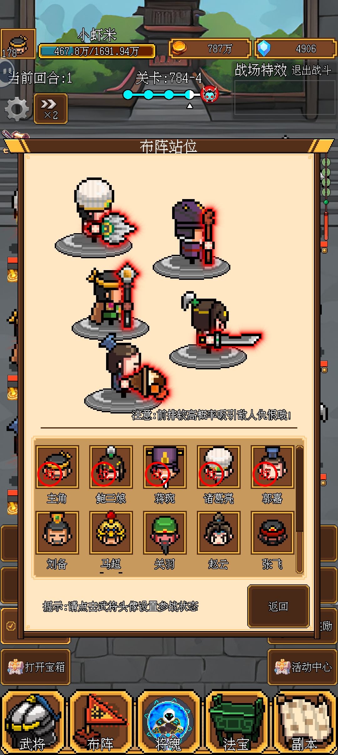 推荐法系阵容 前期主角,张飞,刘备,诸葛,蒋琬,主角带诸葛专武,然后技能我也给了直接看就行,之前我用的单体伤害,但是想推关得用我,郭嘉和黄盖来了就直接换装备上就行,第6天的时候宝箱别用,第七天可以攒着,可以让黄盖升星 除了黄盖每个人都要有一个高级法连,怒气点到3,法宝带上碧如意就好了 刘备(自带)和蒋琬得带一个高级神迹,把坦度拉上去,这俩只是辅助,然后主角和郭嘉带个高级吸血,其他往法伤叠,肉就堆肉