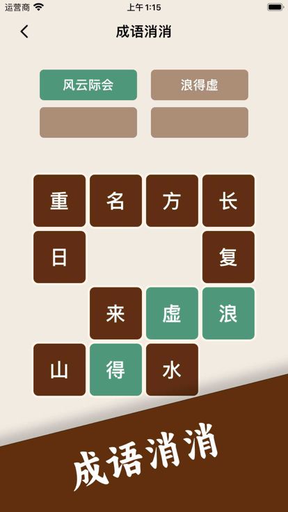 从列出的单字中找出找出成语,运用你的成语储备,将所有字统统消除即可通关。