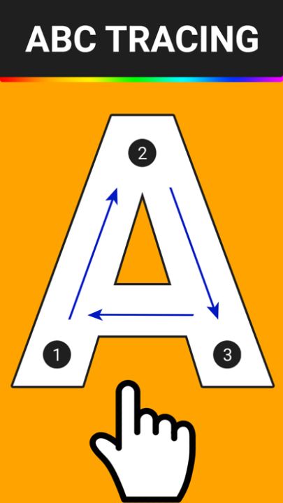 之后,您可以选择要写的字母或数字。 它将出现在屏幕上。 在它上面,将有箭头,孩子将需要沿着箭头按所需方向画一个手指,然后将绘制该元素。 会说出这封信的名字!