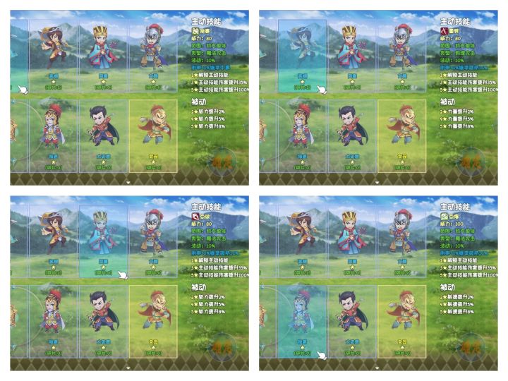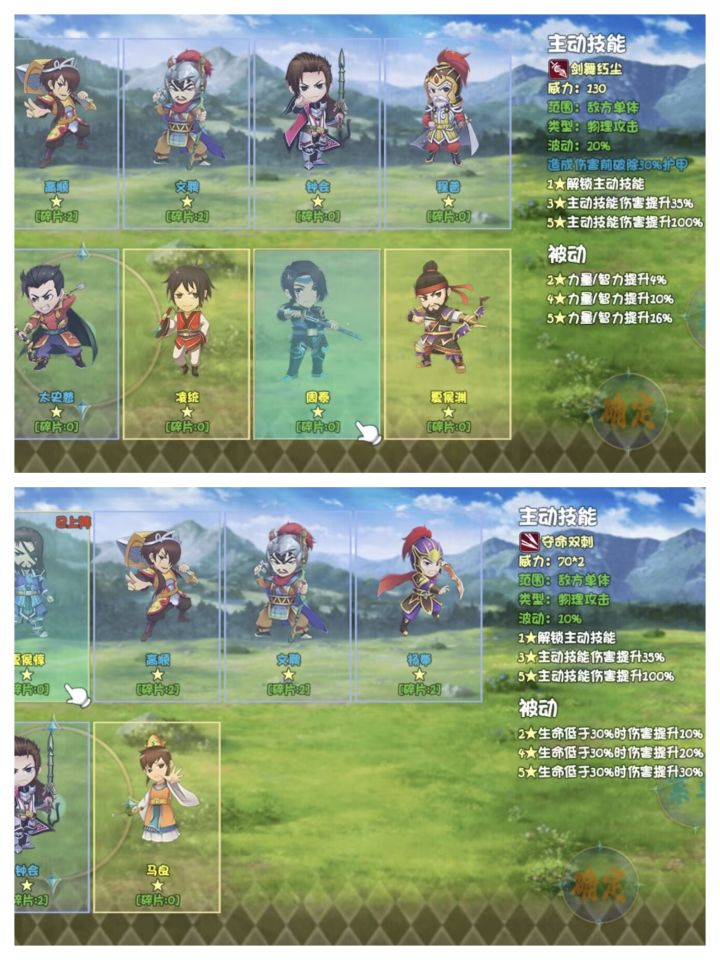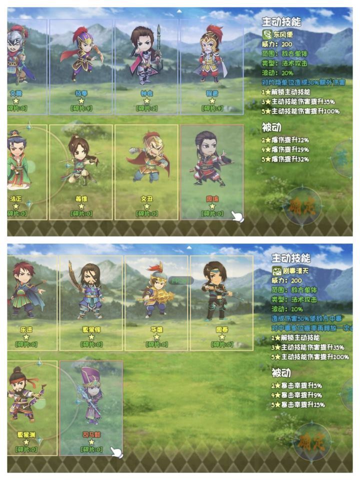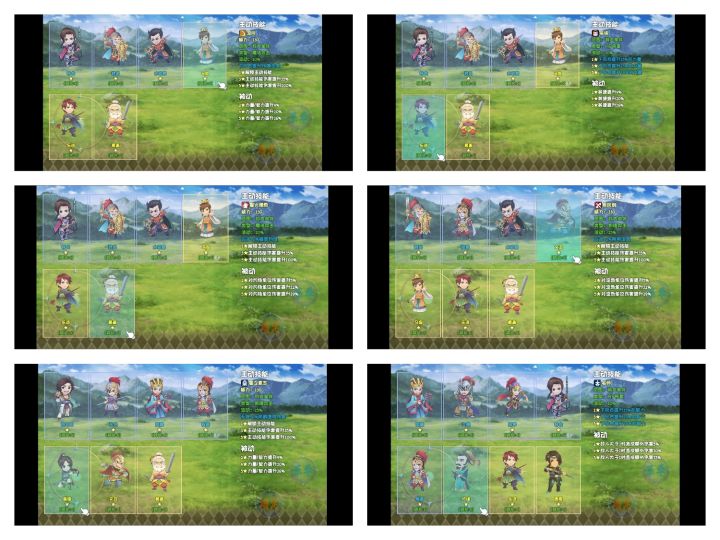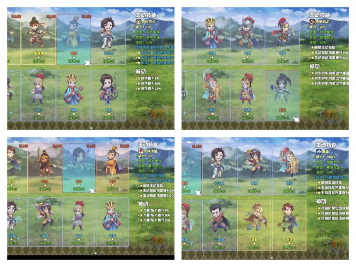 蓝色组:图1,张任,文聘,杨奉,钟会,韩当,太史慈图2,司马昭,高顺,简雍,程普黄色组:图3,马良,乐进,黄盖,文丑,姜维,卢植图4,法正,颜良,华雄,凌统,夏侯渊图5,周泰,夏侯惇橙色组:图6,袁绍,赵云,陆逊,董卓图7,周瑜,司马懿图8,典韦,关羽