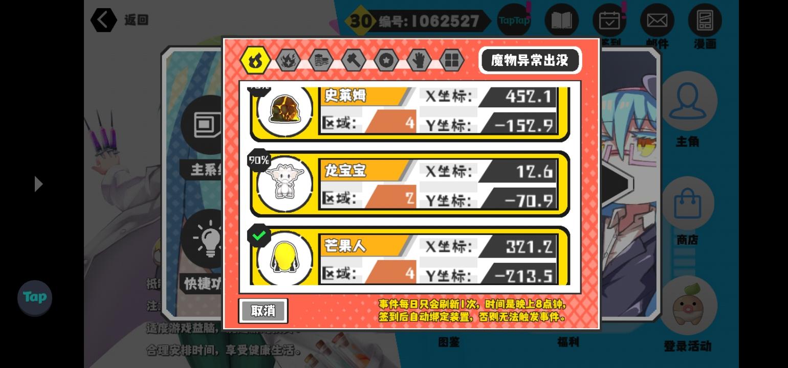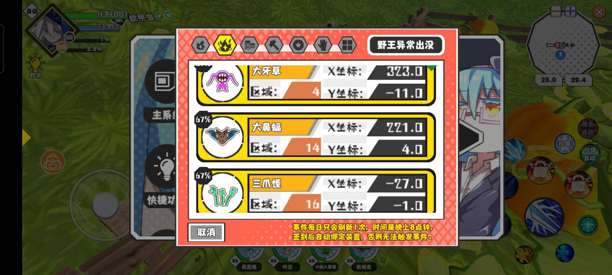 今天想要啥就抓吧,20点过后没了,推荐尖牙蛇在洞穴底下,进化强度7