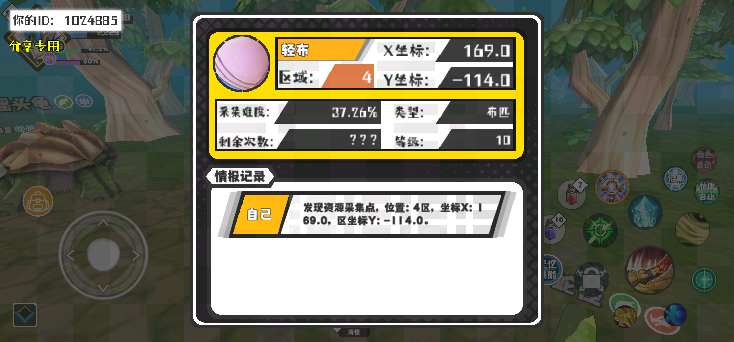 幸运时刻分享! 【资源采集点】4月30日下午10点 - 轻布【10级】 【4区】 【X:169.0, Y:-114.0】