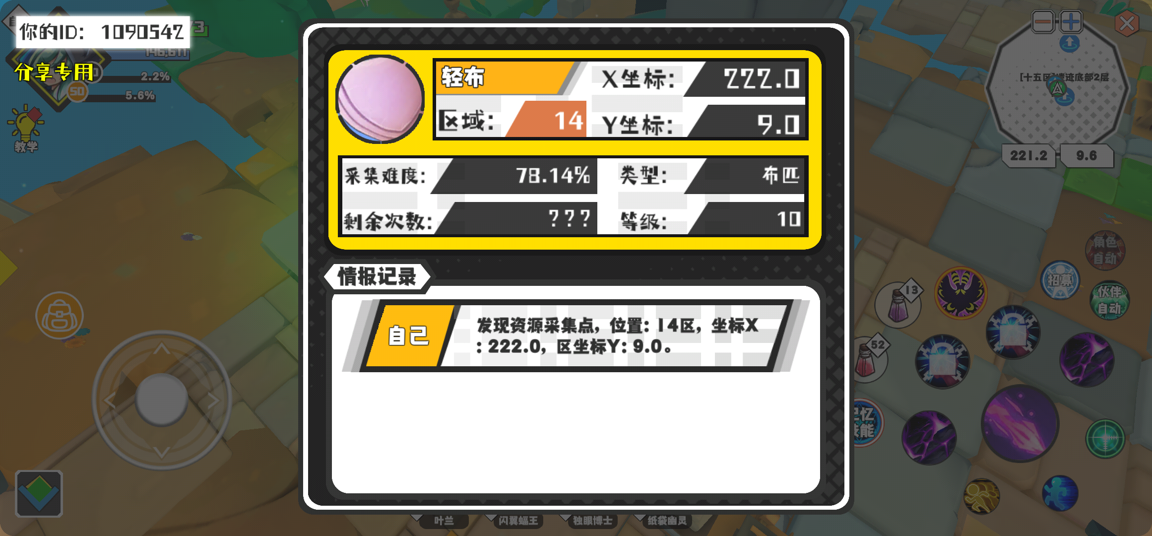 幸运时刻分享! 【资源采集点】8月31日下午1点 - 轻布【10级】 【14区】 【X:222.0, Y:9.0】