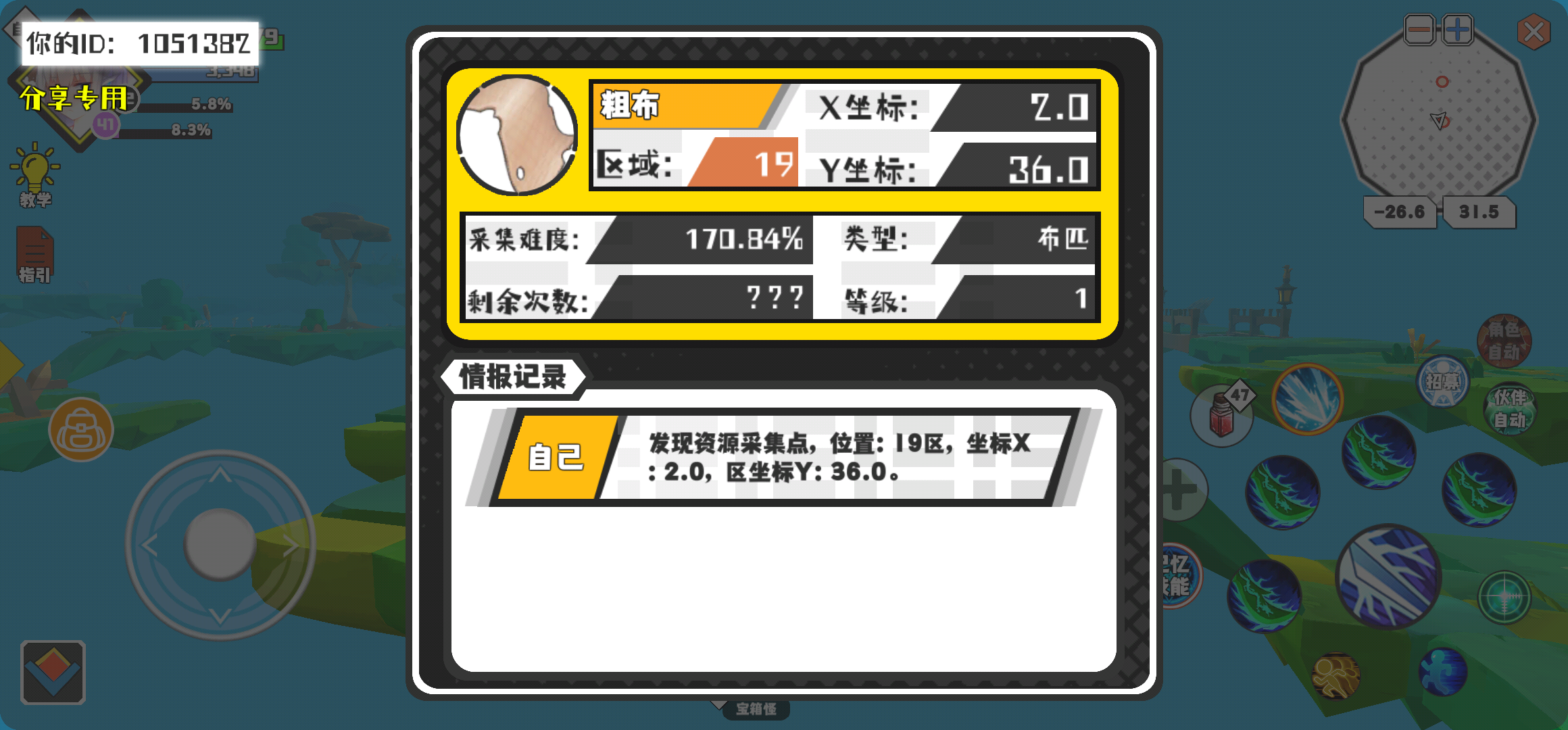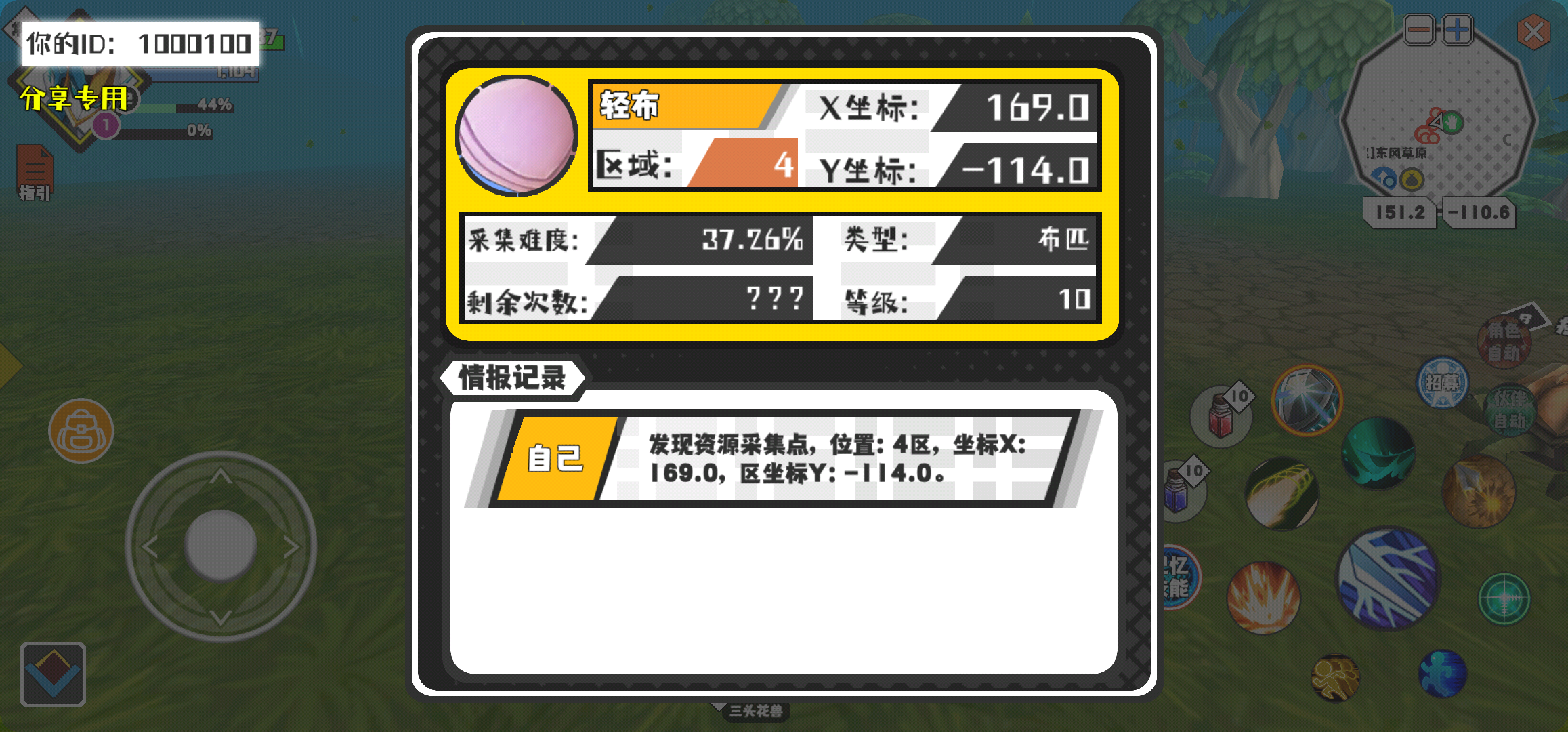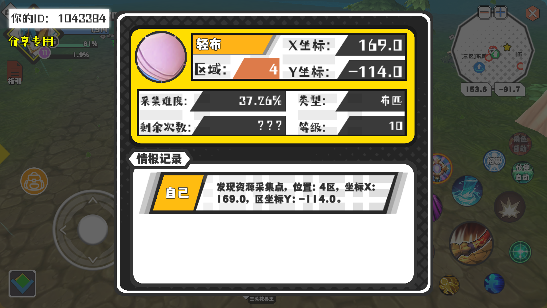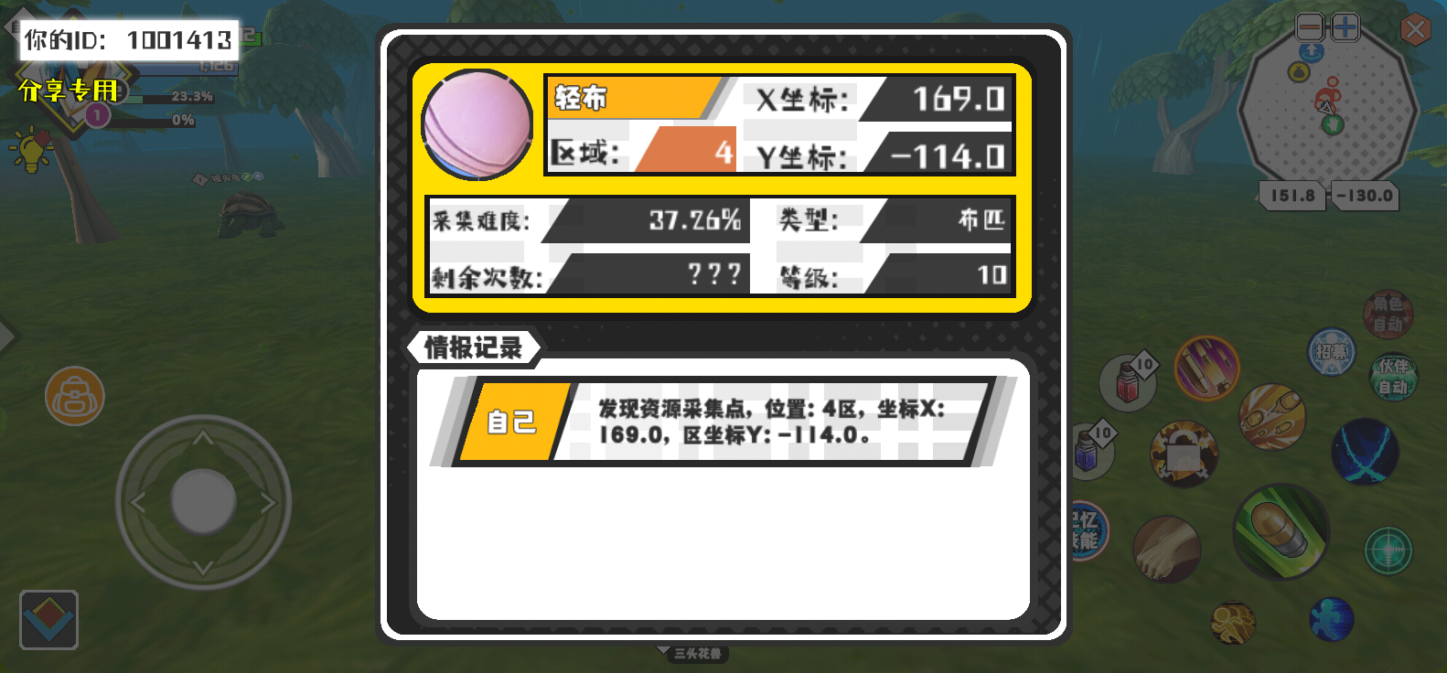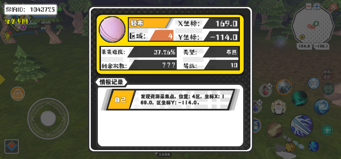 幸运时刻分享! 【资源采集点】5月1日下午12点 - 轻布【10级】 【4区】 【X:169.0, Y:-114.0】