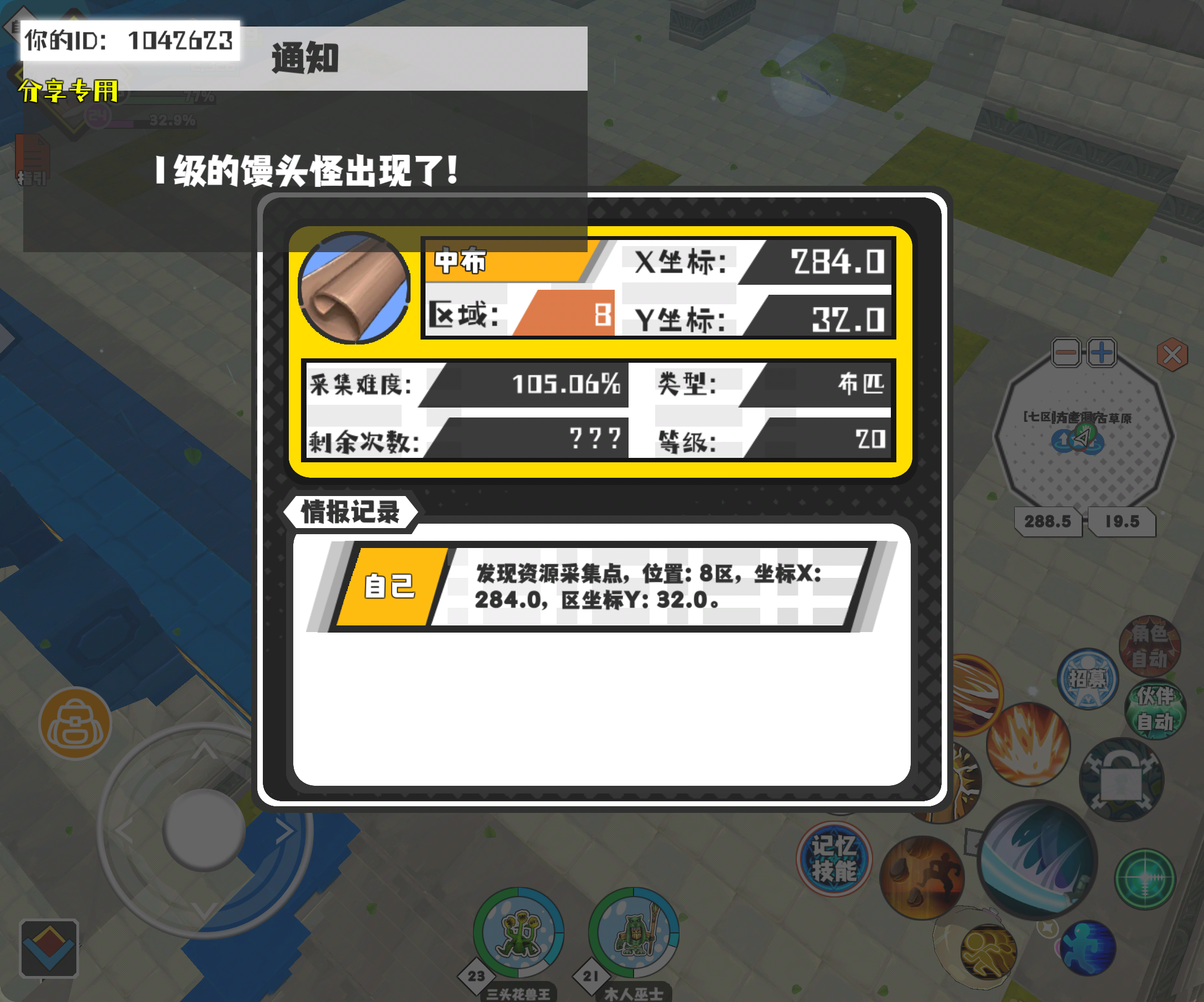 幸运时刻分享! 【资源采集点】5月1日下午2点 - 中布【20级】 【8区】 【X:284.0, Y:32.0】