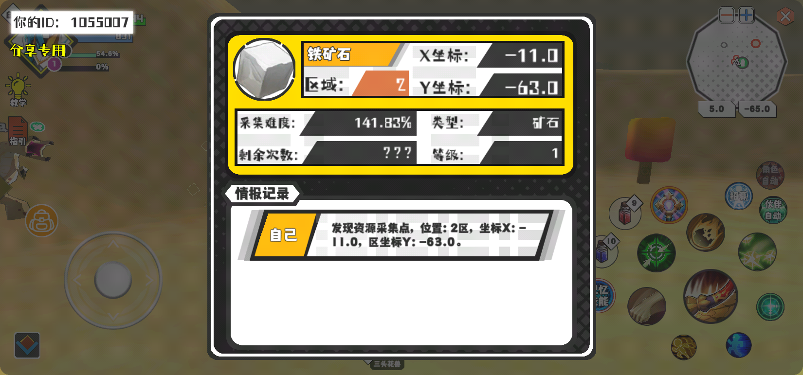 幸运时刻分享! 【资源采集点】5月5日上午5点 - 铁矿石【1级】 【2区】 【X:-11.0, Y:-63.0】