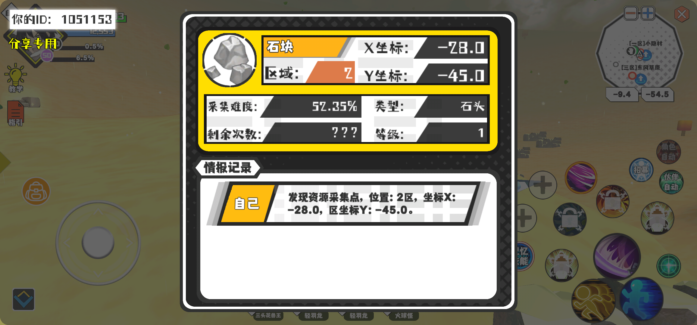 幸运时刻分享! 【资源采集点】5月10日下午3点 - 石块【1级】 【2区】 【X:-28.0, Y:-45.0】