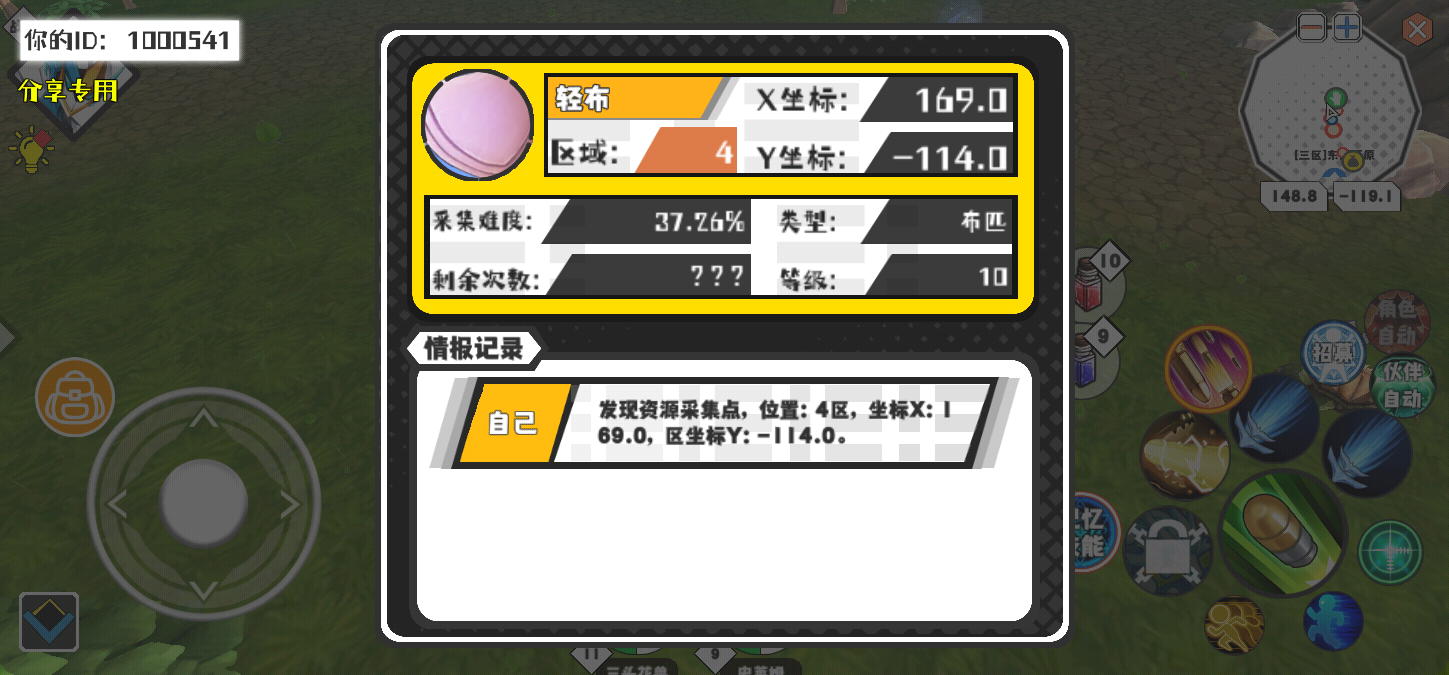 幸运时刻分享! 【资源采集点】4月30日下午8点 - 轻布【10级】 【4区】 【X:169.0, Y:-114.0】