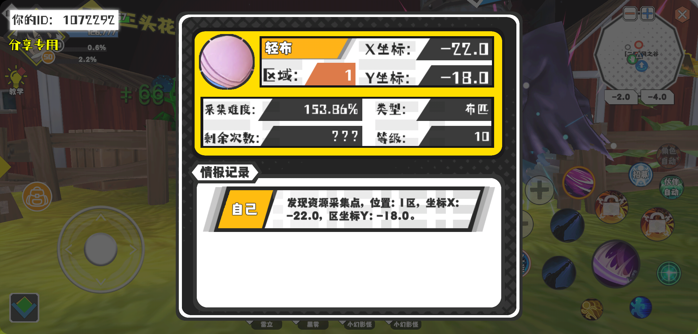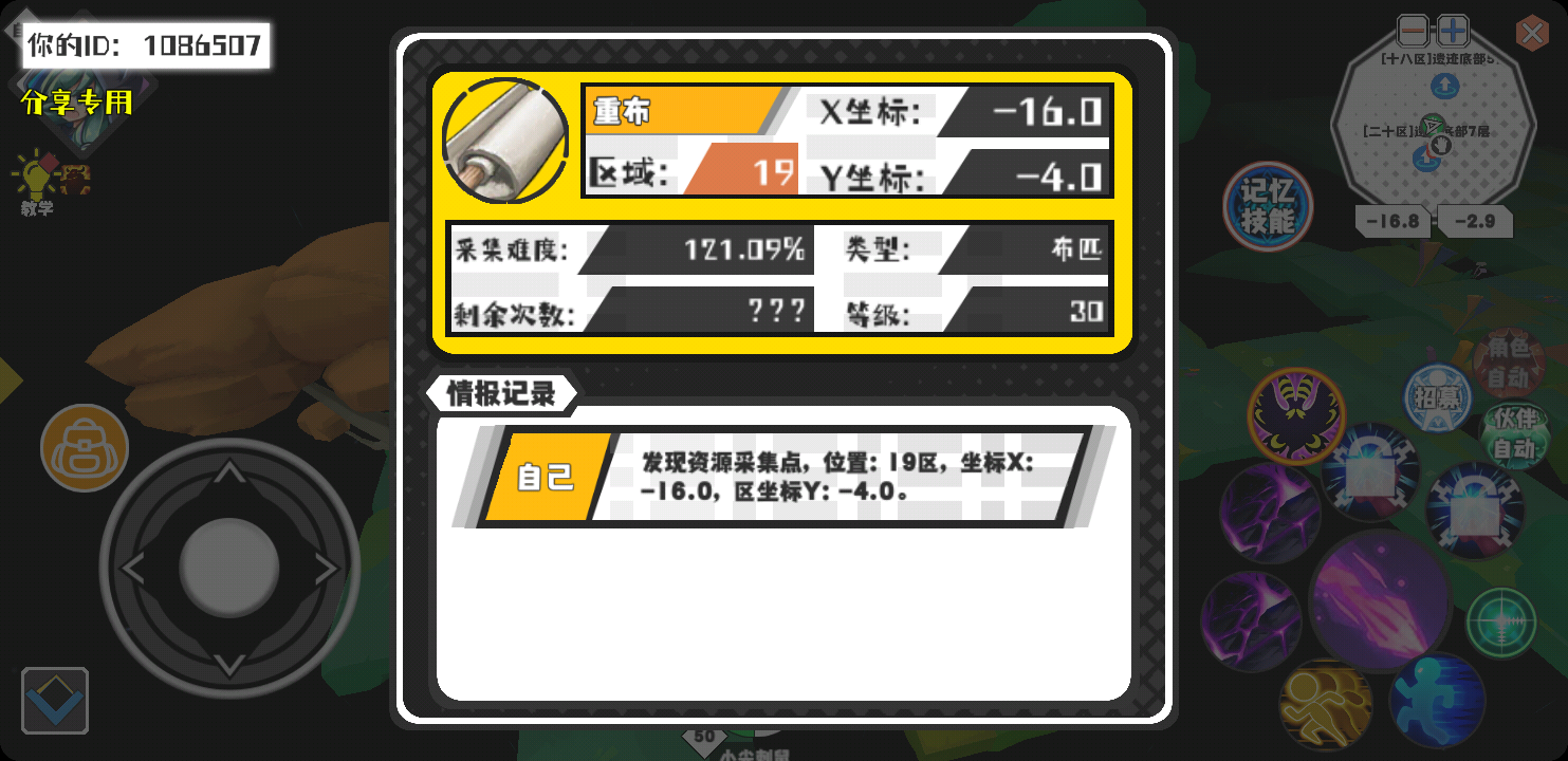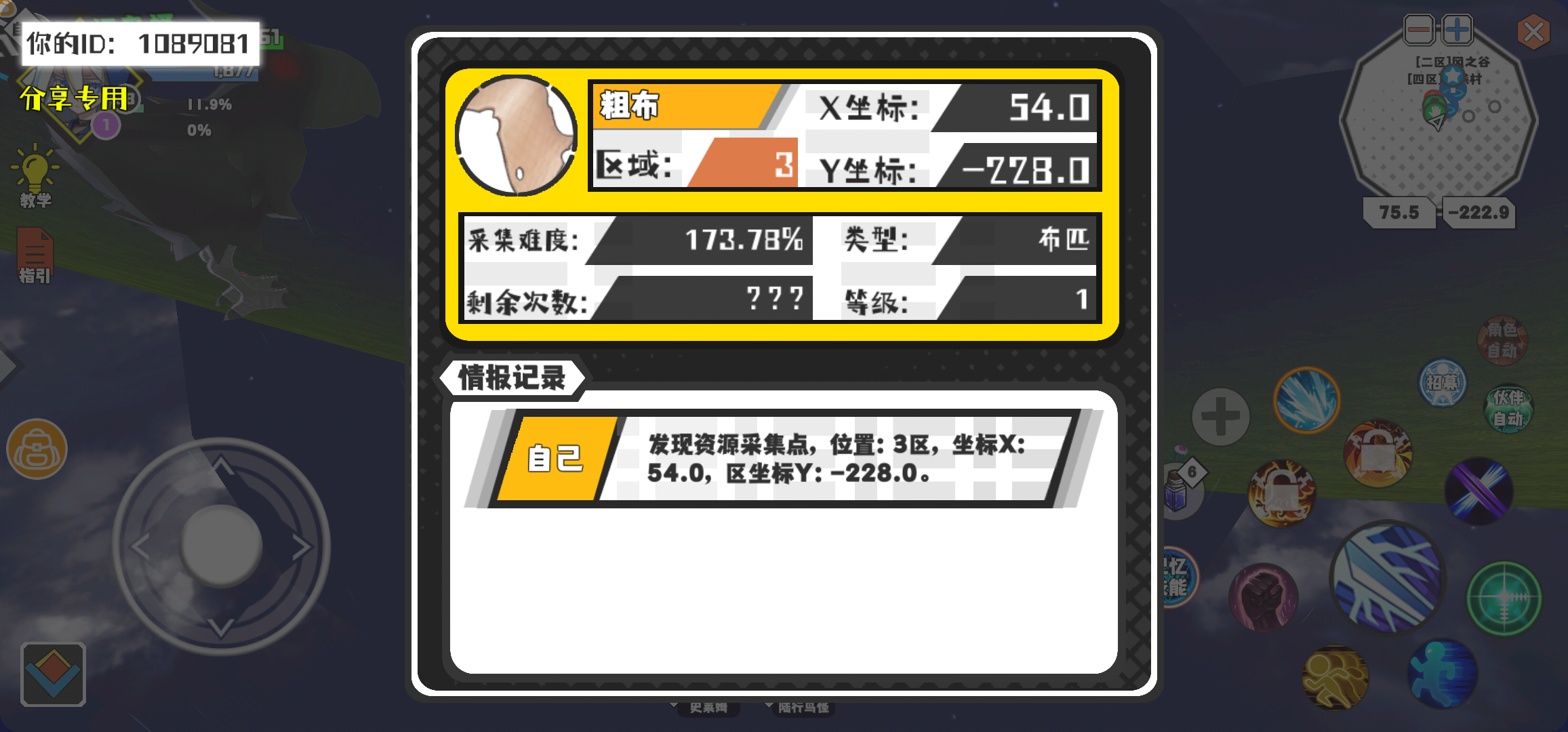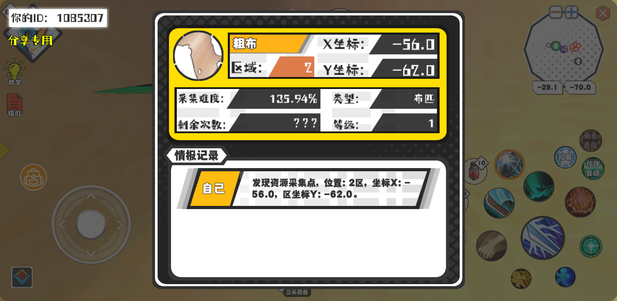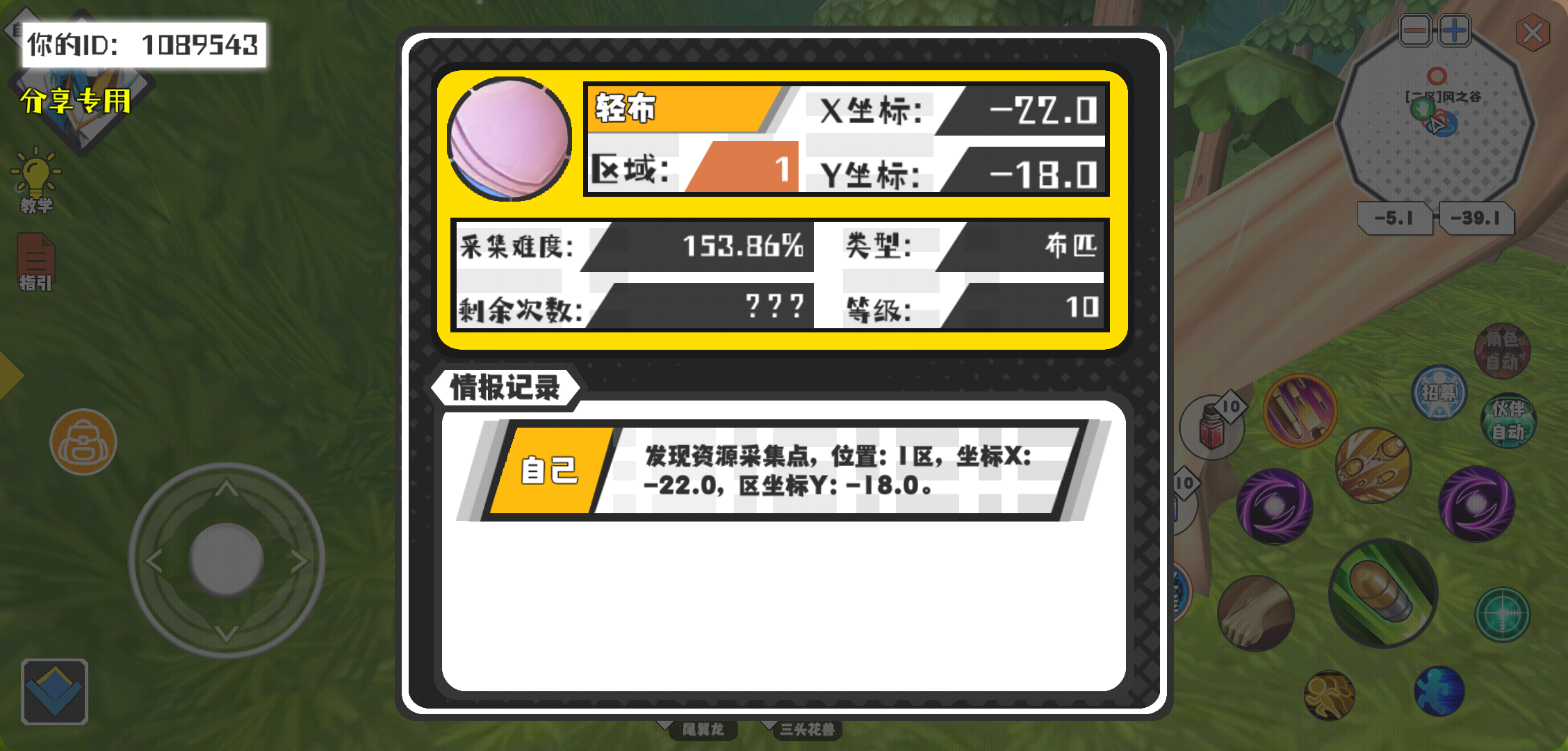幸运时刻分享! 【资源采集点】7月26日下午8点 - 轻布【10级】 【1区】 【X:-22.0, Y:-18.0】
