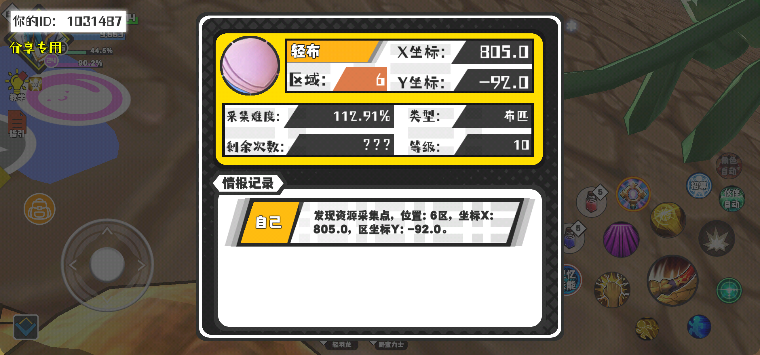 幸运时刻分享! 【资源采集点】7月5日上午2点 - 轻布【10级】 【6区】 【X:805.0, Y:-92.0】