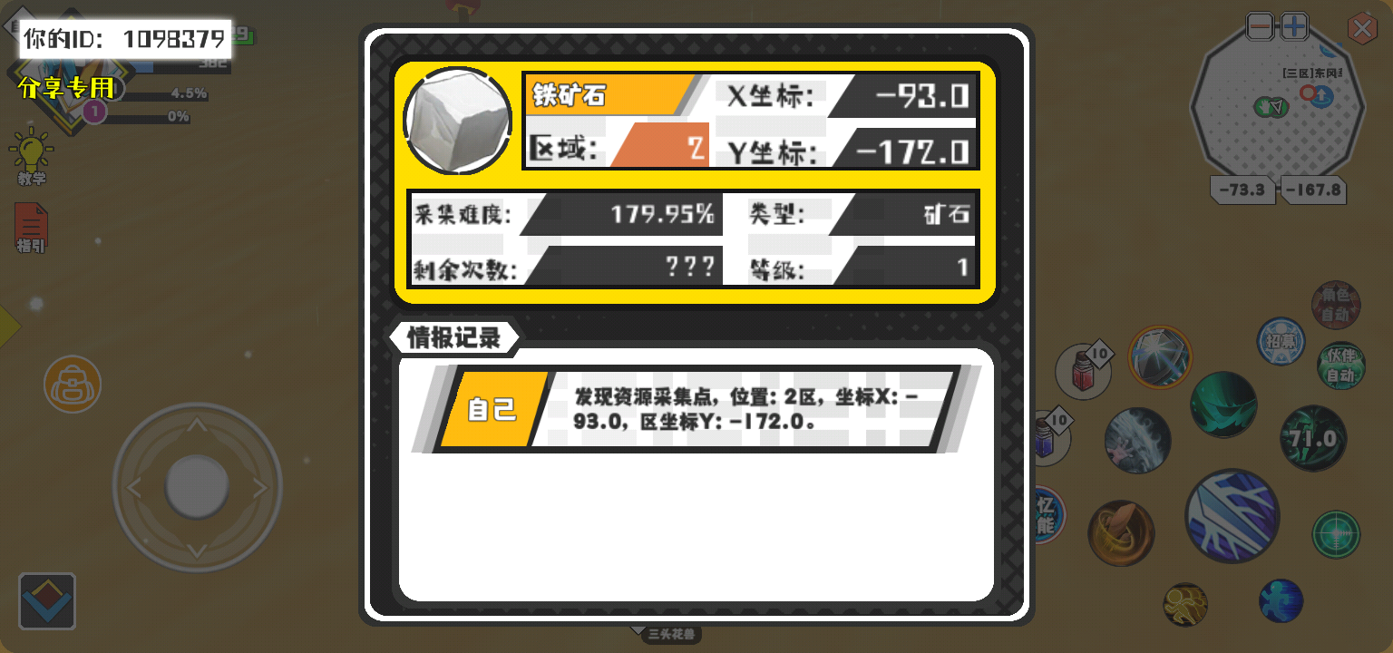 幸运时刻分享! 【资源采集点】8月2日上午7点 - 铁矿石【1级】 【2区】 【X:-93.0, Y:-172.0】