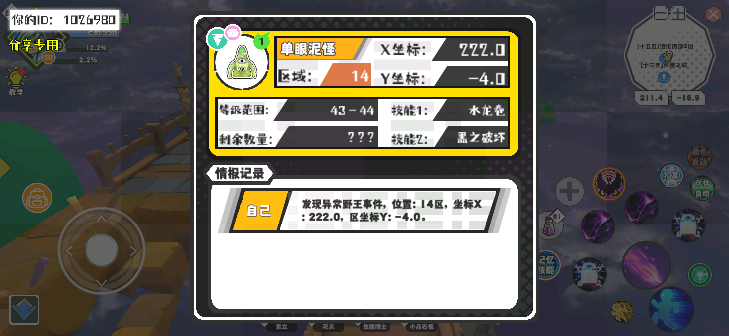 厄运时刻分享! 【野王异常出没】6月19日下午6点 - 单眼泥怪【强度1】 【14区】 【X:222.0, Y:-4.0】