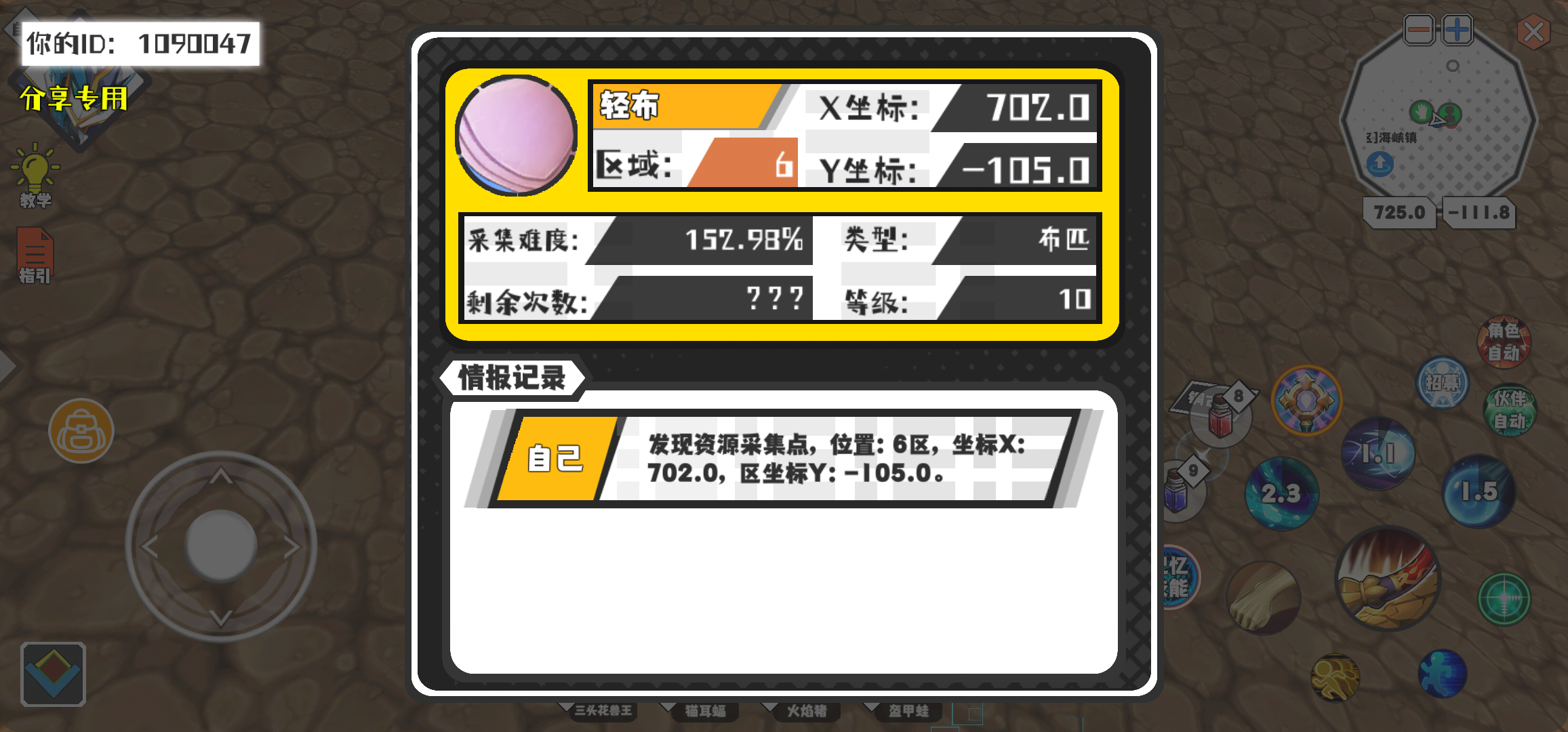 幸运时刻分享! 【资源采集点】7月23日下午5点 - 轻布【10级】 【6区】 【X:702.0, Y:-105.0】