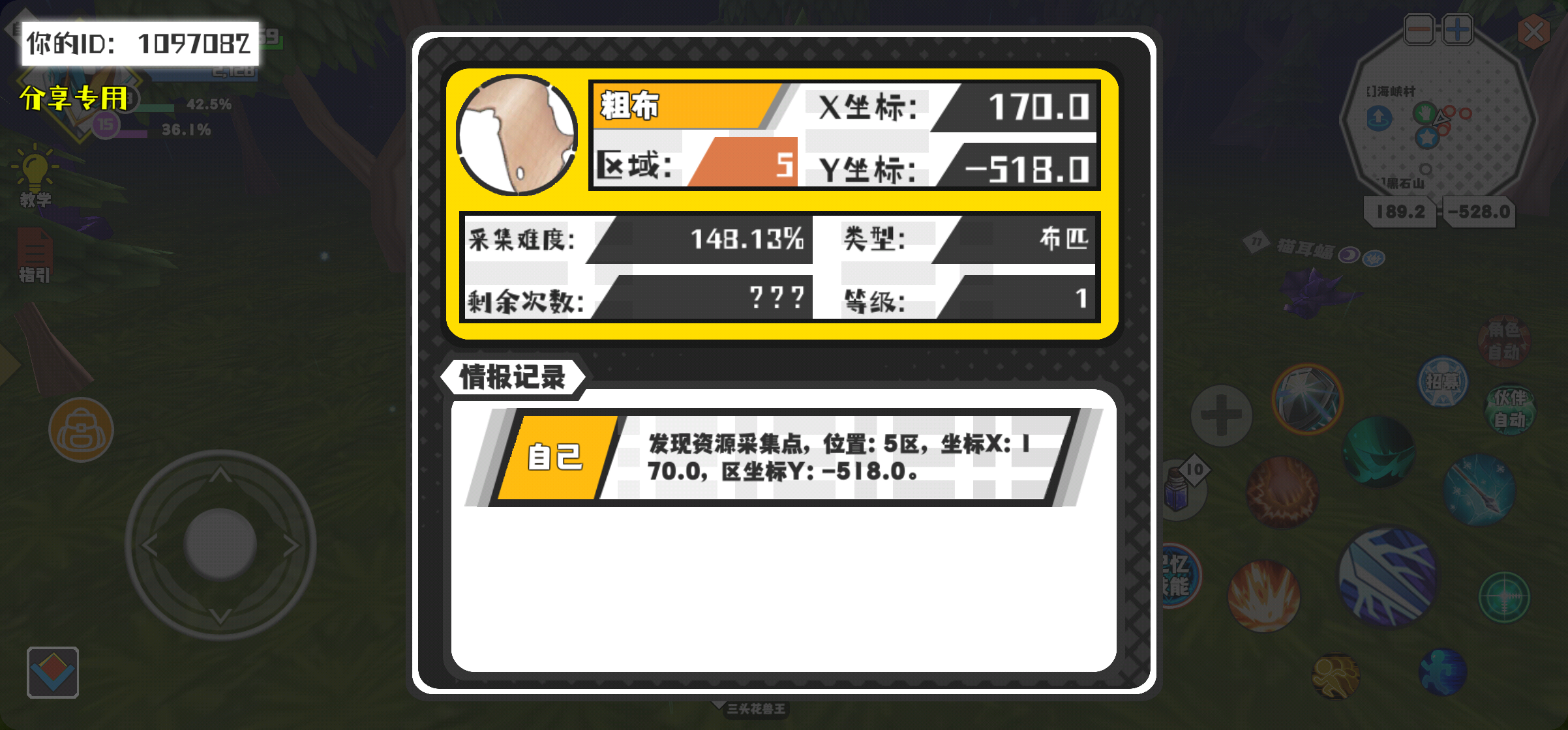 幸运时刻分享! 【资源采集点】8月4日下午2点 - 粗布【1级】 【4区】 【X:425.0, Y:-141.0】