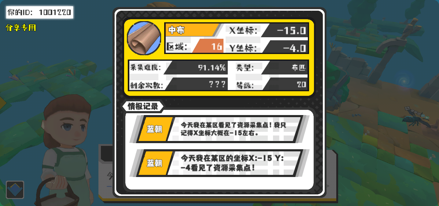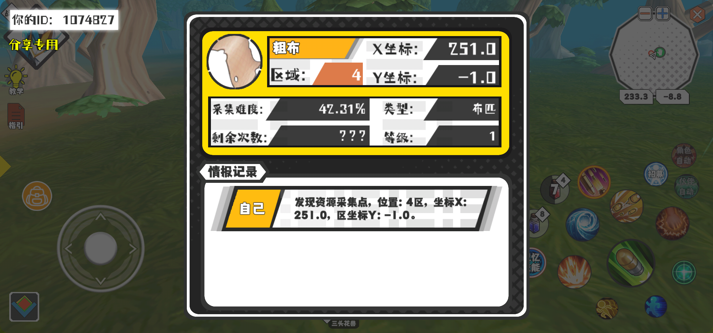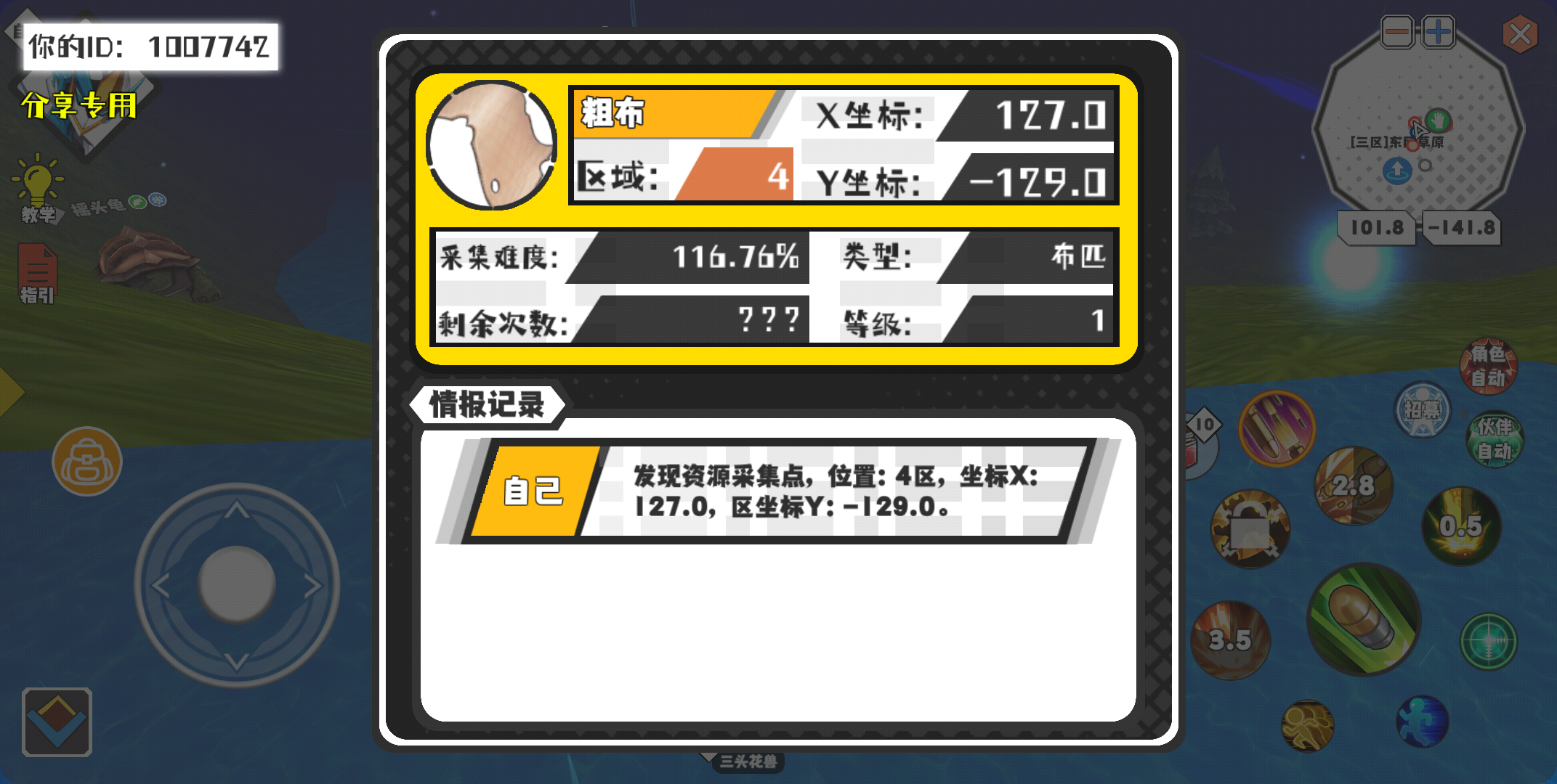 幸运时刻分享! 【资源采集点】7月2日下午6点 - 轻布【10级】 【4区】 【X:361.0, Y:-170.0】