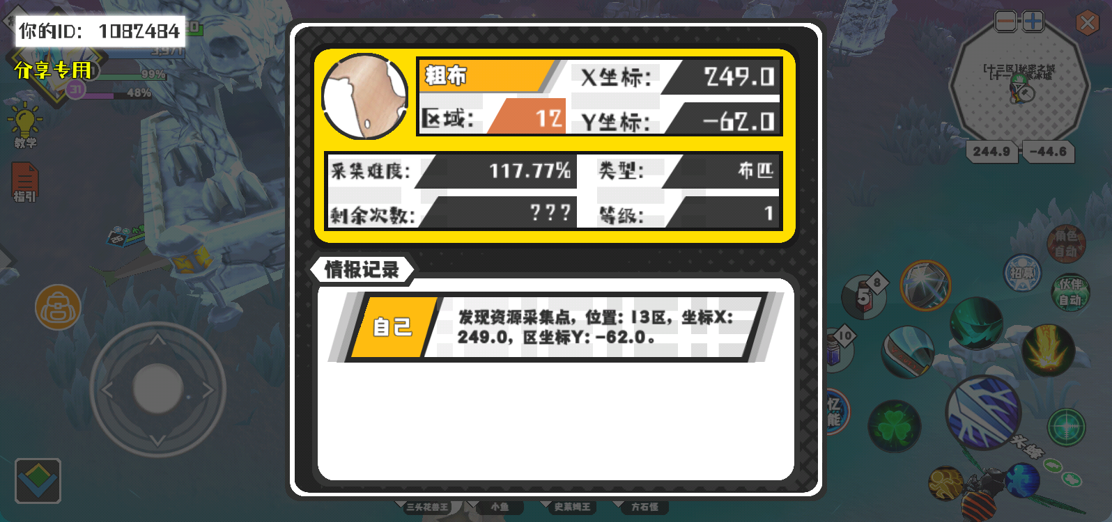 幸运时刻分享! 【资源采集点】7月19日下午10点 - 轻布【10级】 【14区】 【X:202.0, Y:-72.0】