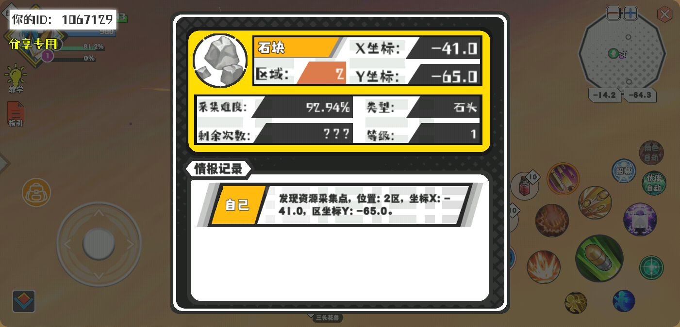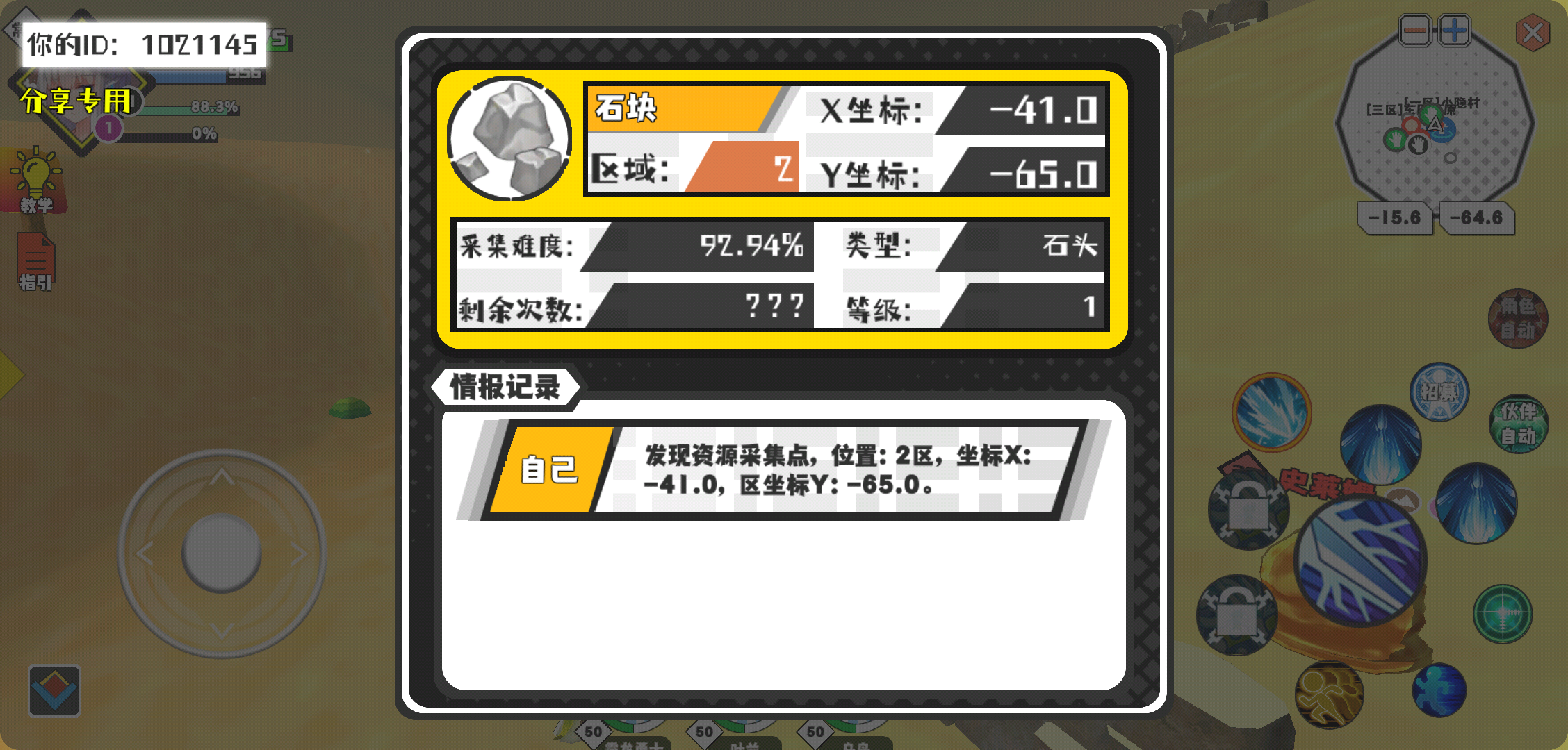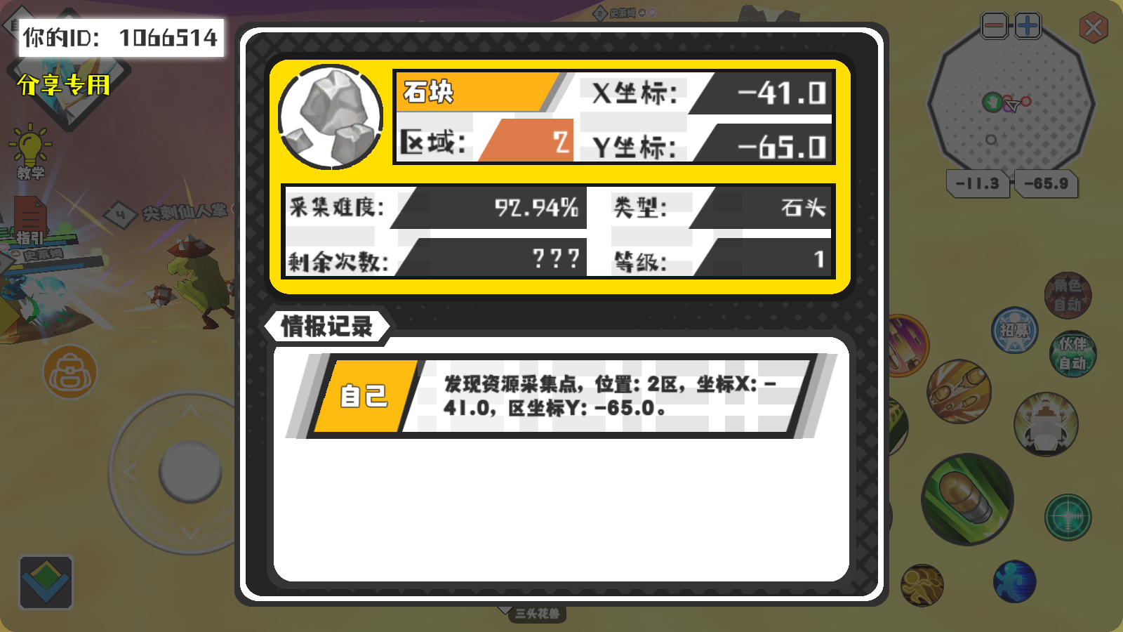 幸运时刻分享! 【资源采集点】5月13日上午12点 - 石块【1级】 【2区】 【X:-41.0, Y:-65.0】