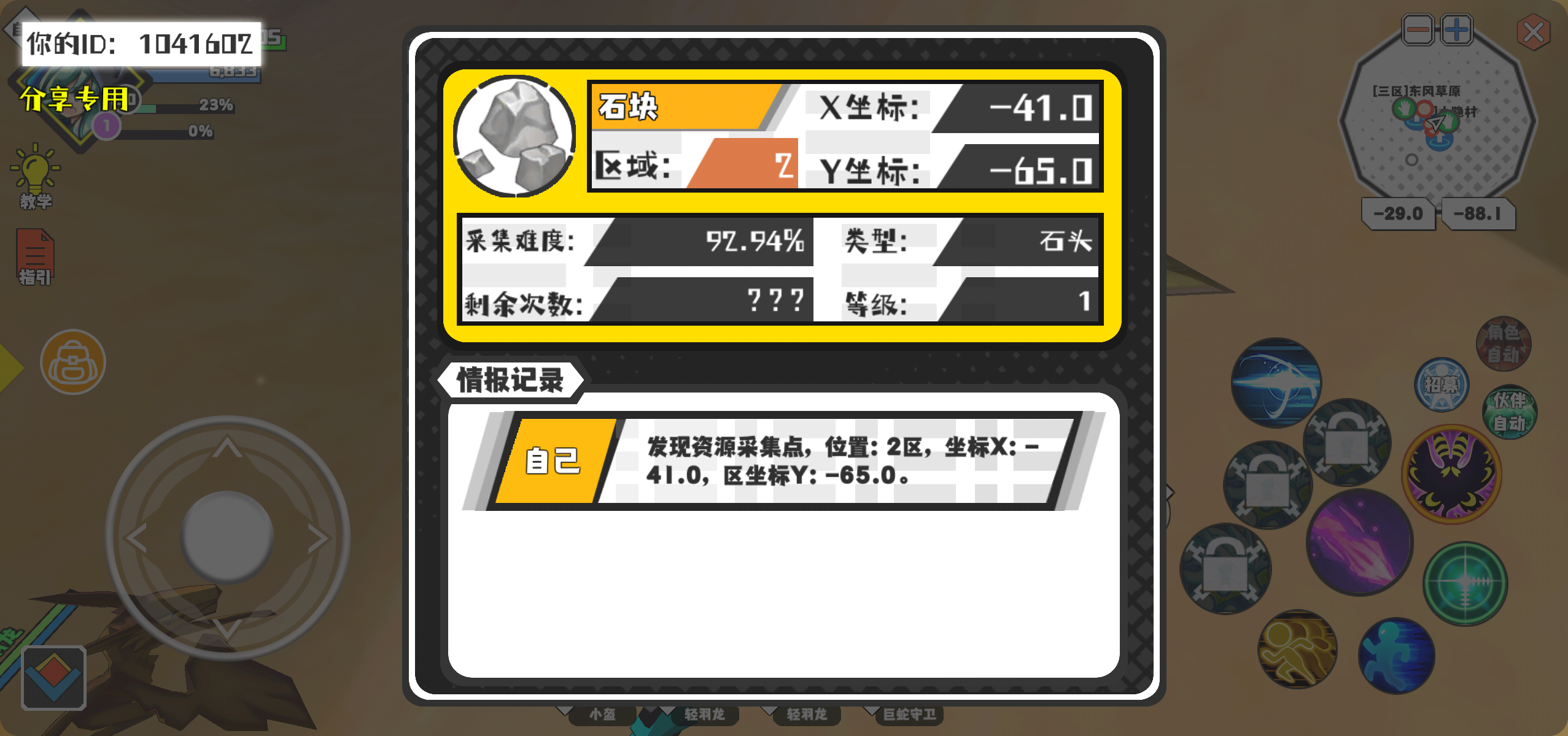 幸运时刻分享! 【资源采集点】5月12日下午11点 - 石块【1级】 【2区】 【X:-41.0, Y:-65.0】