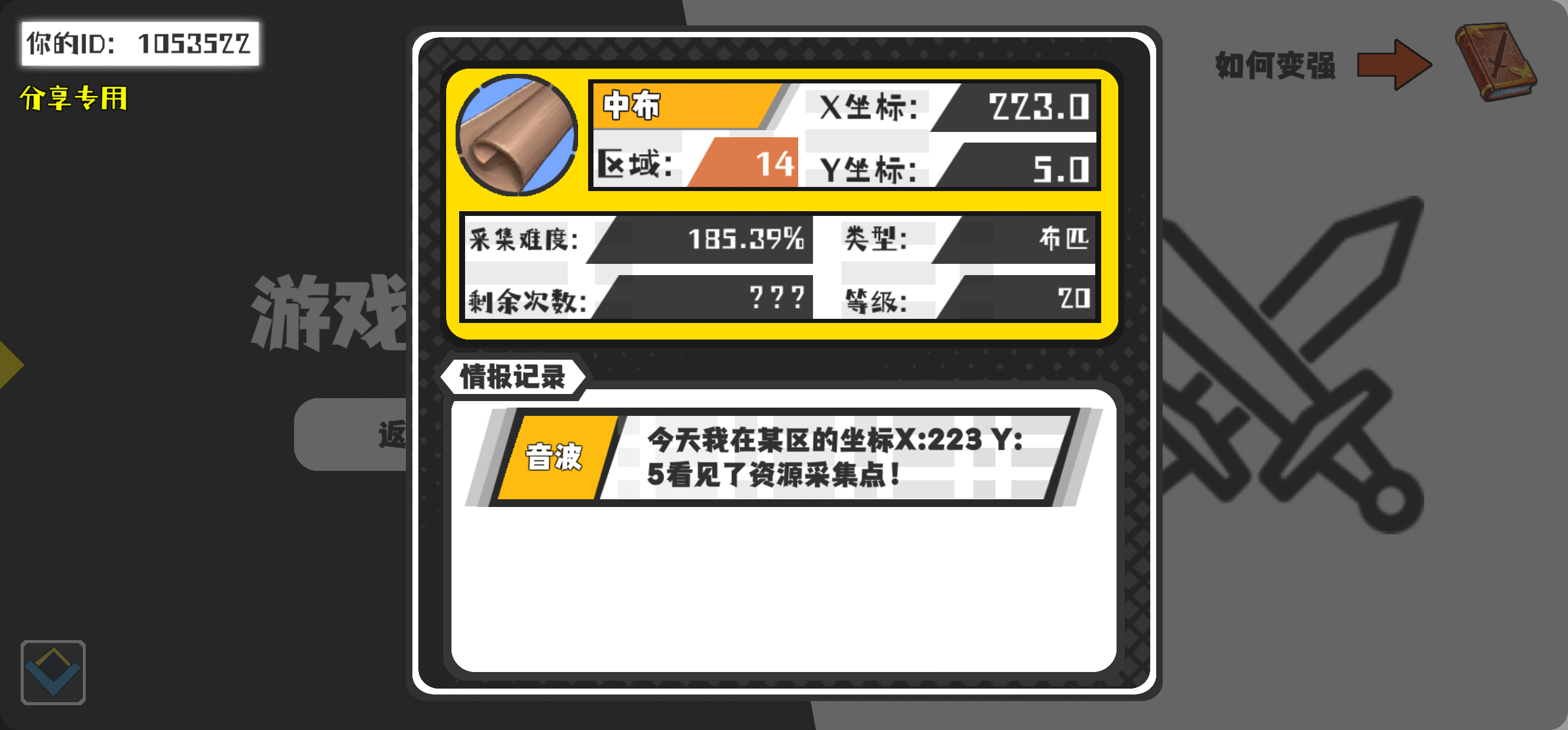 幸运时刻分享! 【资源采集点】5月12日下午1点 - 中布【20级】 【14区】 【X:223.0, Y:5.0】