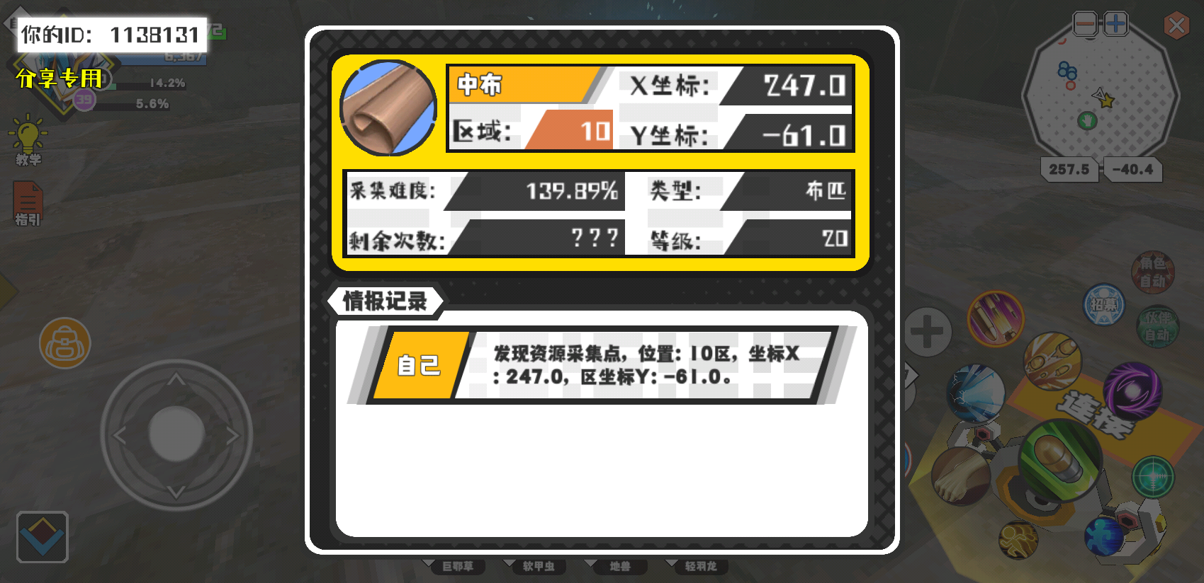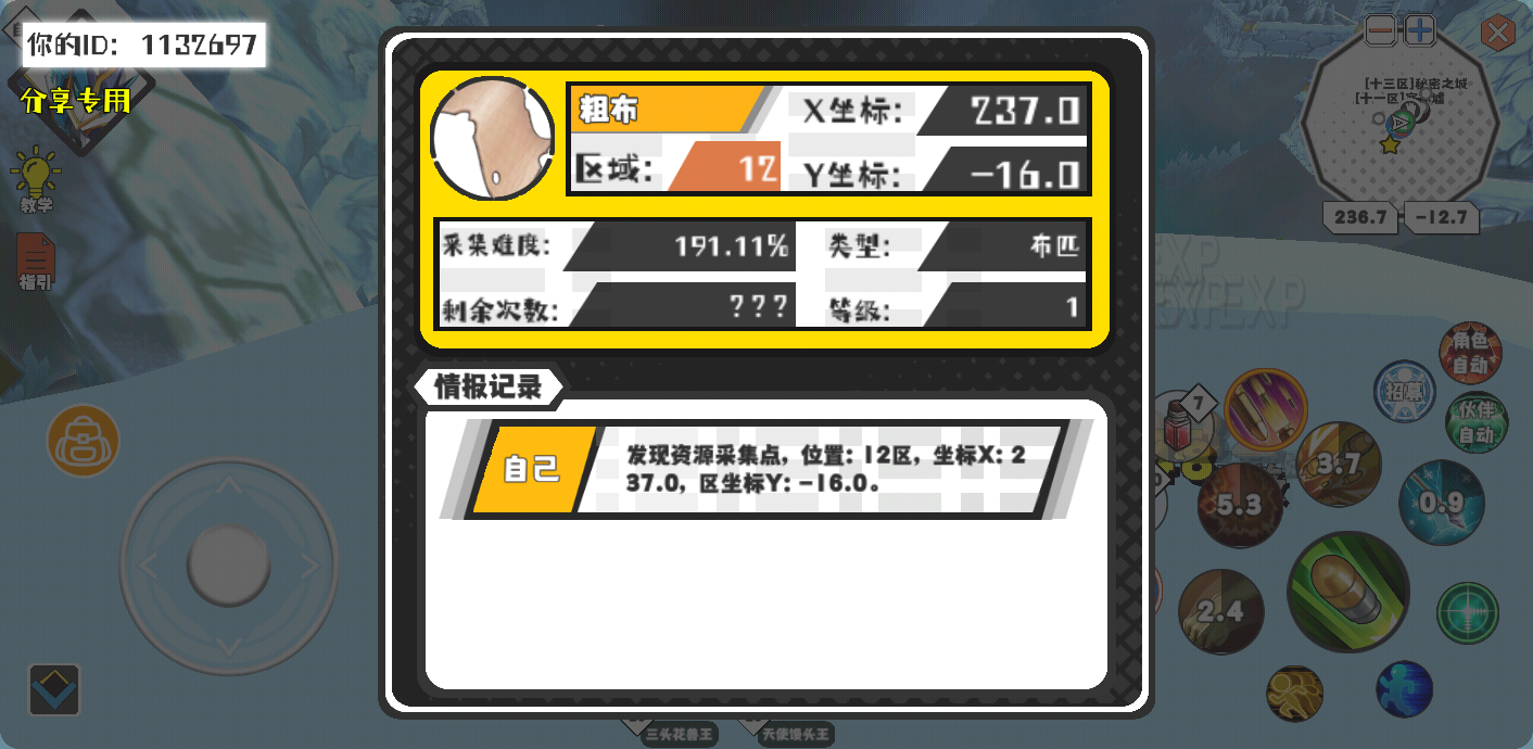 幸运时刻分享! 【资源采集点】9月10日上午10点 - 中布【20级】 【10区】 【X:247.0, Y:-61.0】