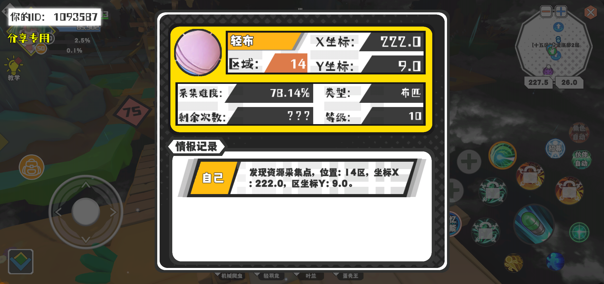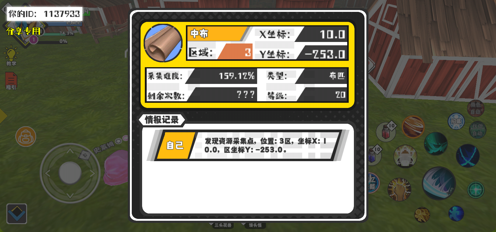 幸运时刻分享! 【资源采集点】8月30日下午8点 - 轻布【10级】 【14区】 【X:222.0, Y:9.0】