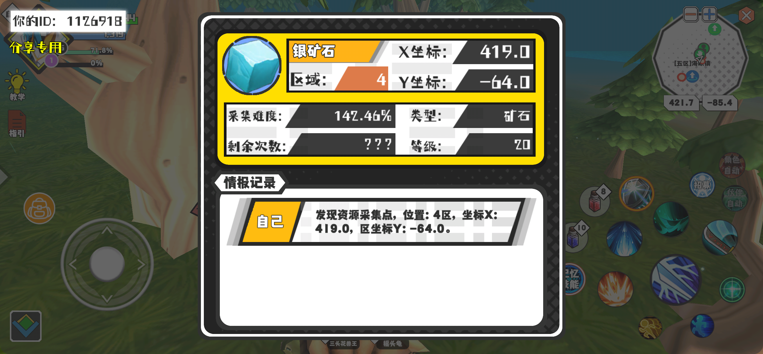 幸运时刻分享! 【资源采集点】8月26日下午10点 - 银矿石【20级】 【4区】 【X:419.0, Y:-64.0】
