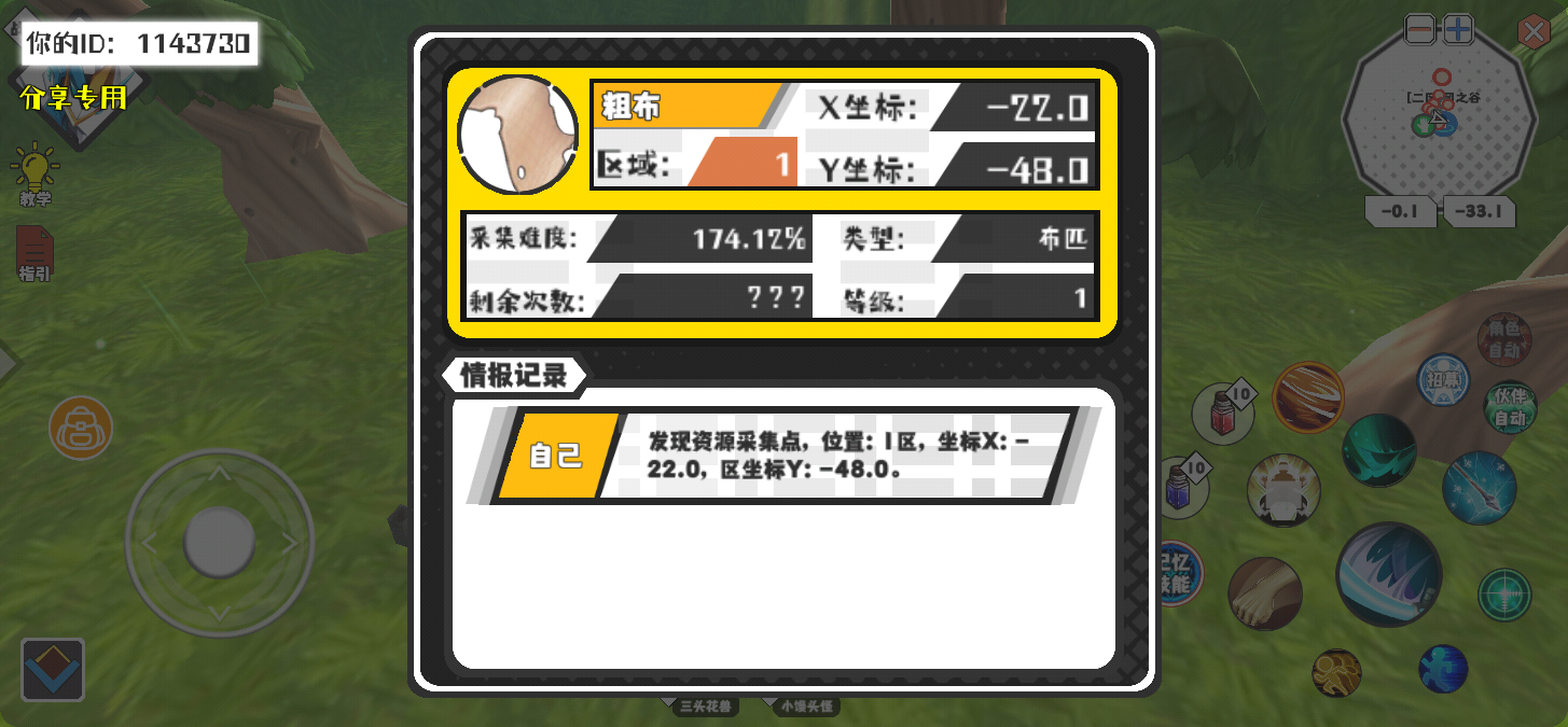 幸运时刻分享! 【资源采集点】9月17日下午9点 - 粗布【1级】 【1区】 【X:-22.0, Y:-48.0】