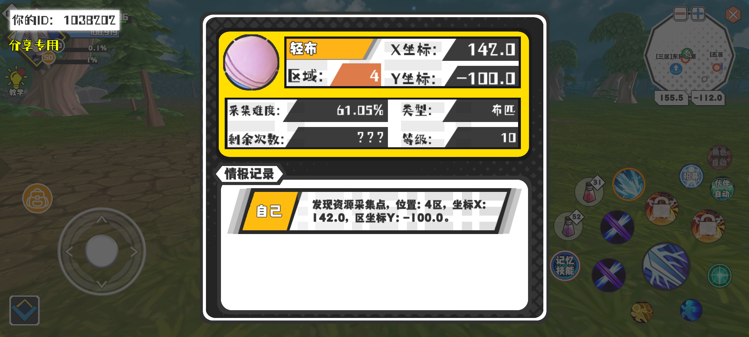 幸运时刻分享! 【资源采集点】9月18日上午8点 - 轻布【10级】 【4区】 【X:142.0, Y:-100.0】