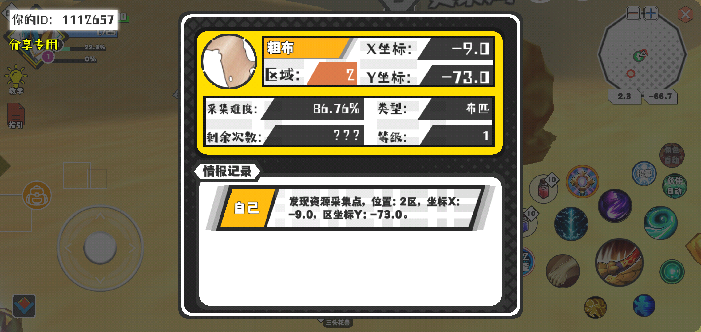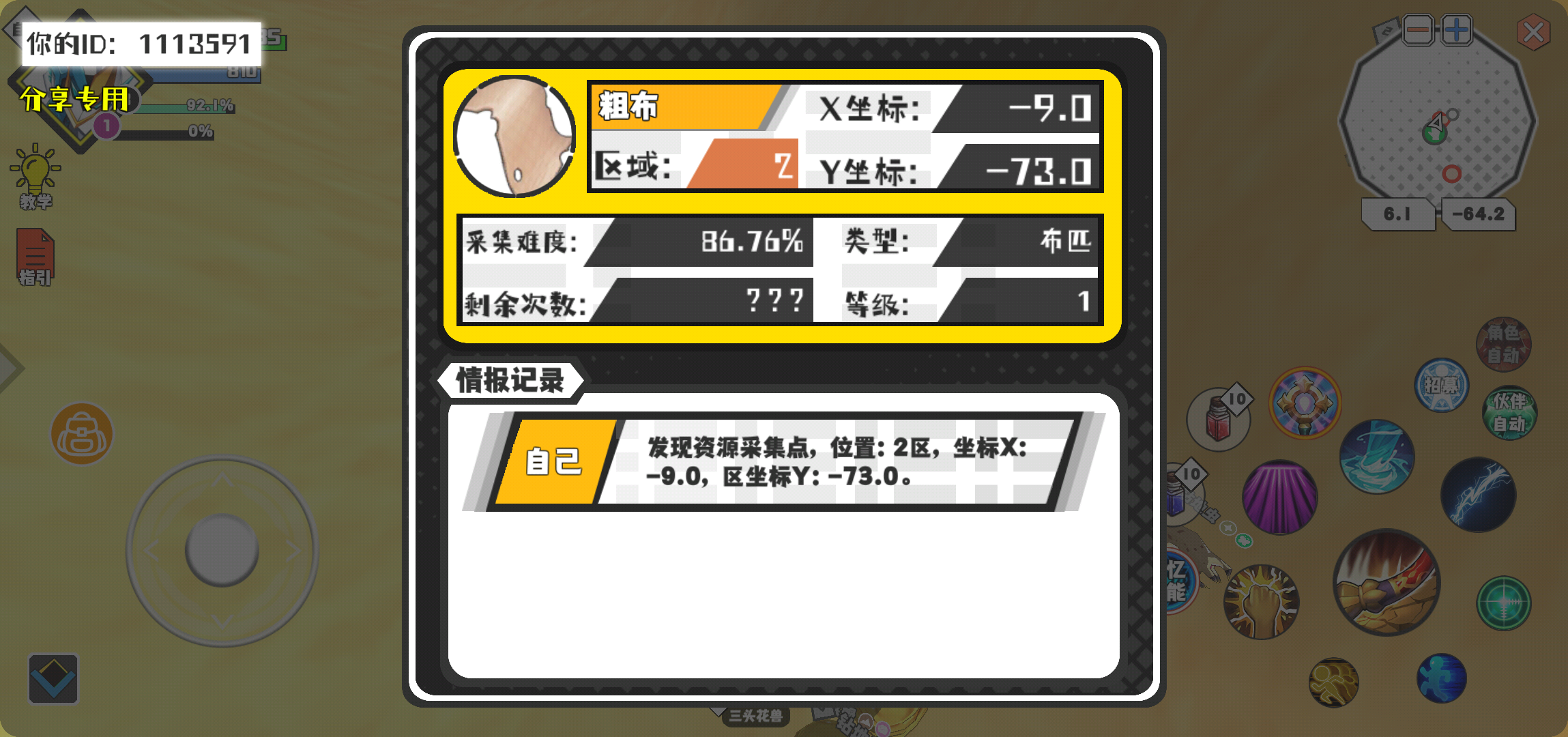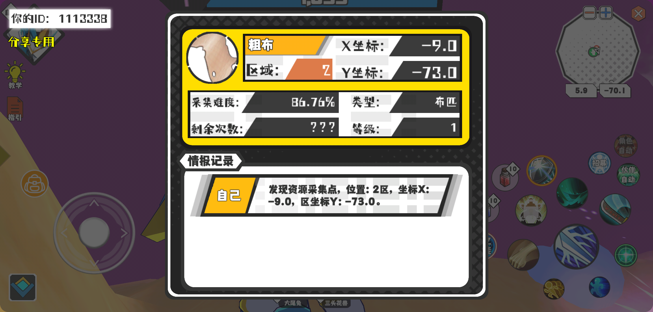 幸运时刻分享! 【资源采集点】8月13日上午12点 - 粗布【1级】 【2区】 【X:-9.0, Y:-73.0】