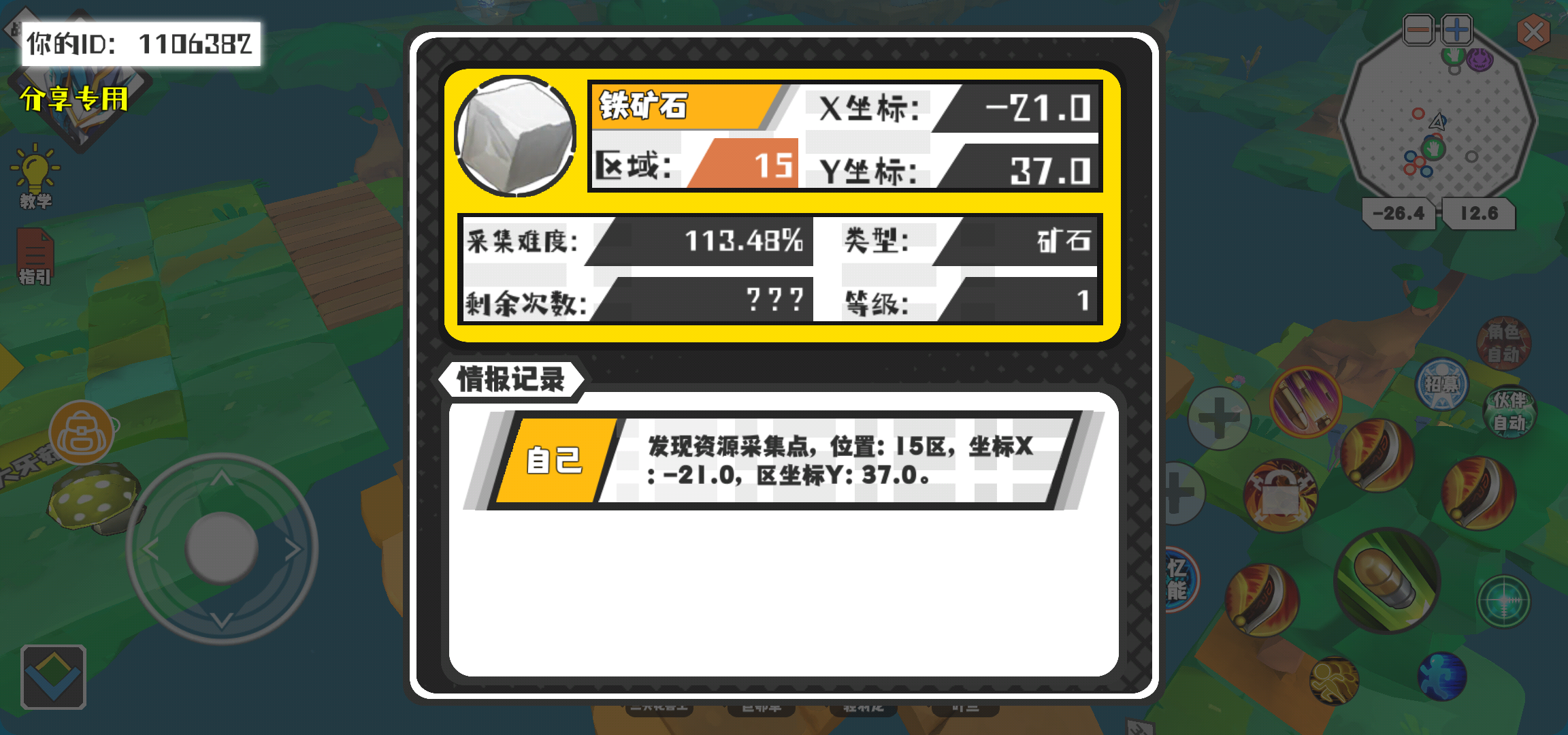 幸运时刻分享! 【资源采集点】8月26日下午9点 - 铁矿石【1级】 【2区】 【X:16.0, Y:-53.0】