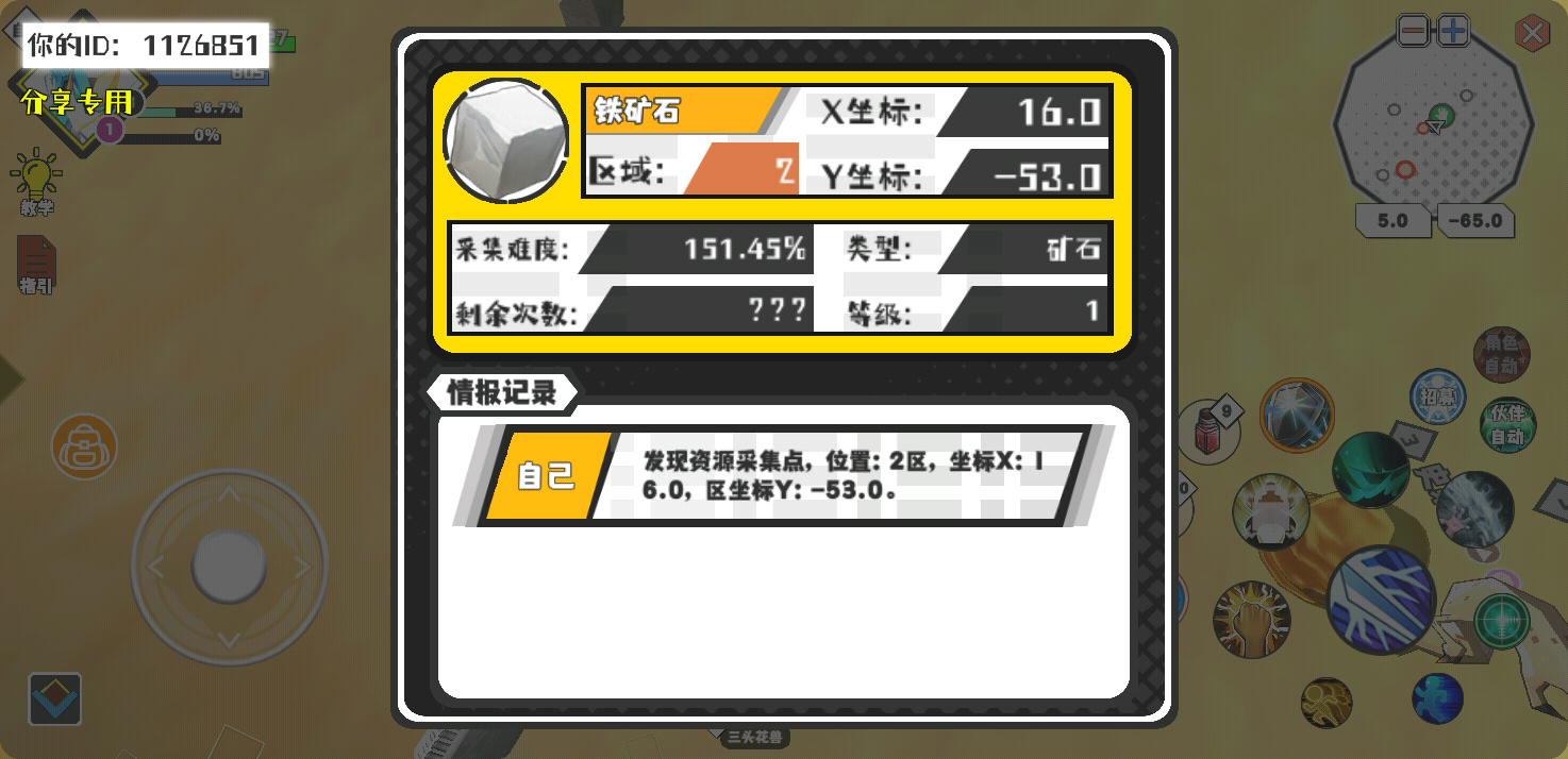 幸运时刻分享! 【资源采集点】8月26日下午11点 - 铁矿石【1级】 【2区】 【X:16.0, Y:-53.0】