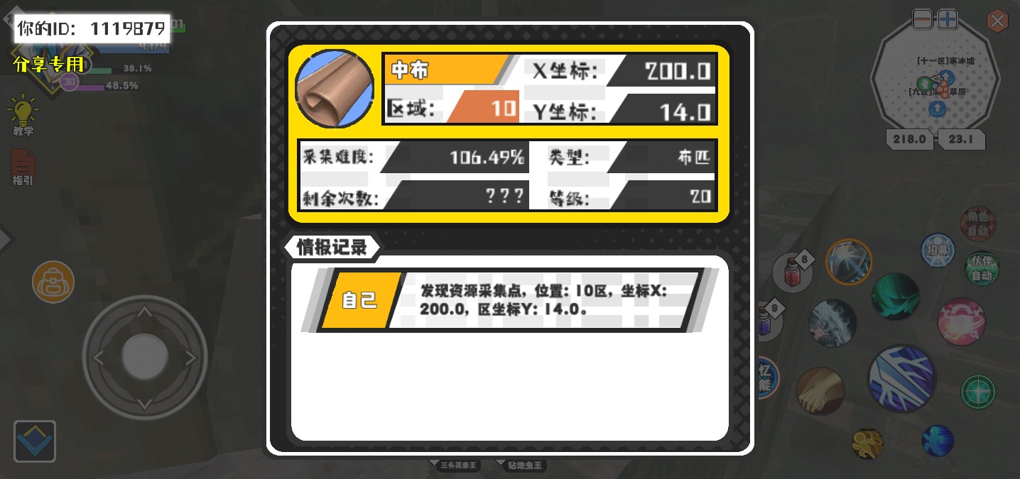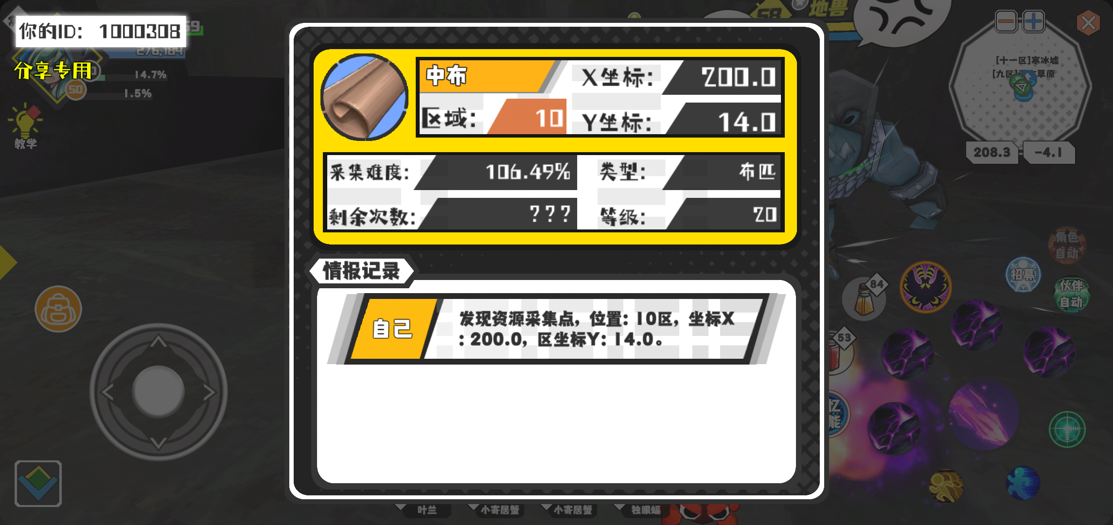 幸运时刻分享! 【资源采集点】8月19日上午11点 - 中布【20级】 【10区】 【X:200.0, Y:14.0】